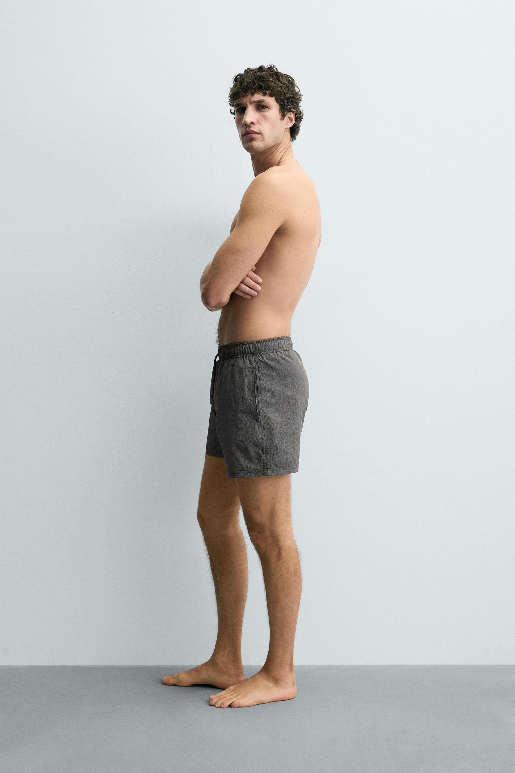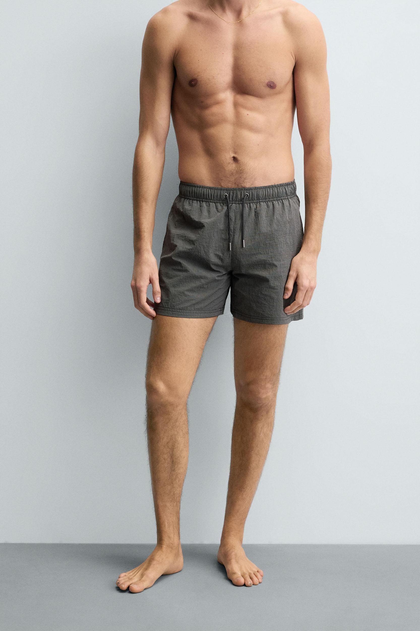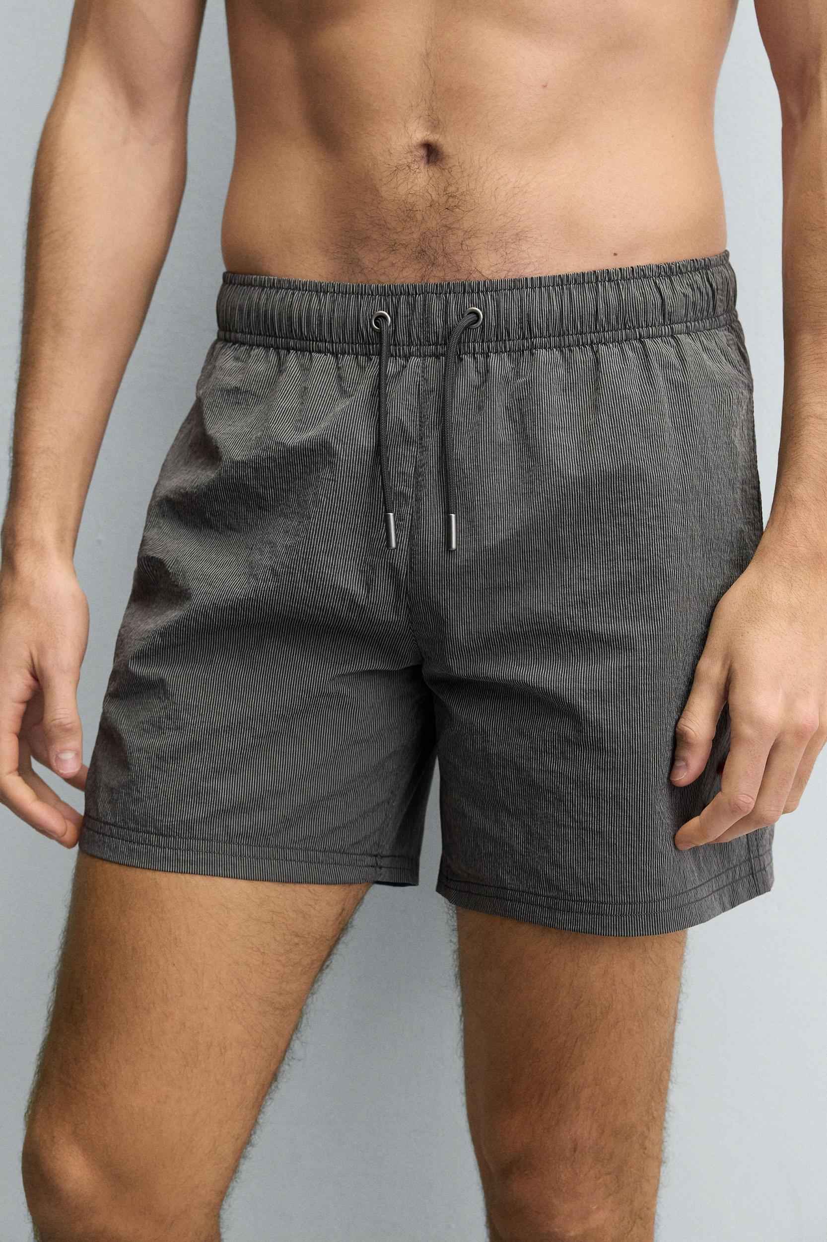 Swimsuit made of technical fabric. Adjustable elastic waistband with drawstring. Side pockets and back welt pocket detail. Inner lining. Inseam: 5.1 inches (13 cm) Outseam: 14.6 inches (37 cm)