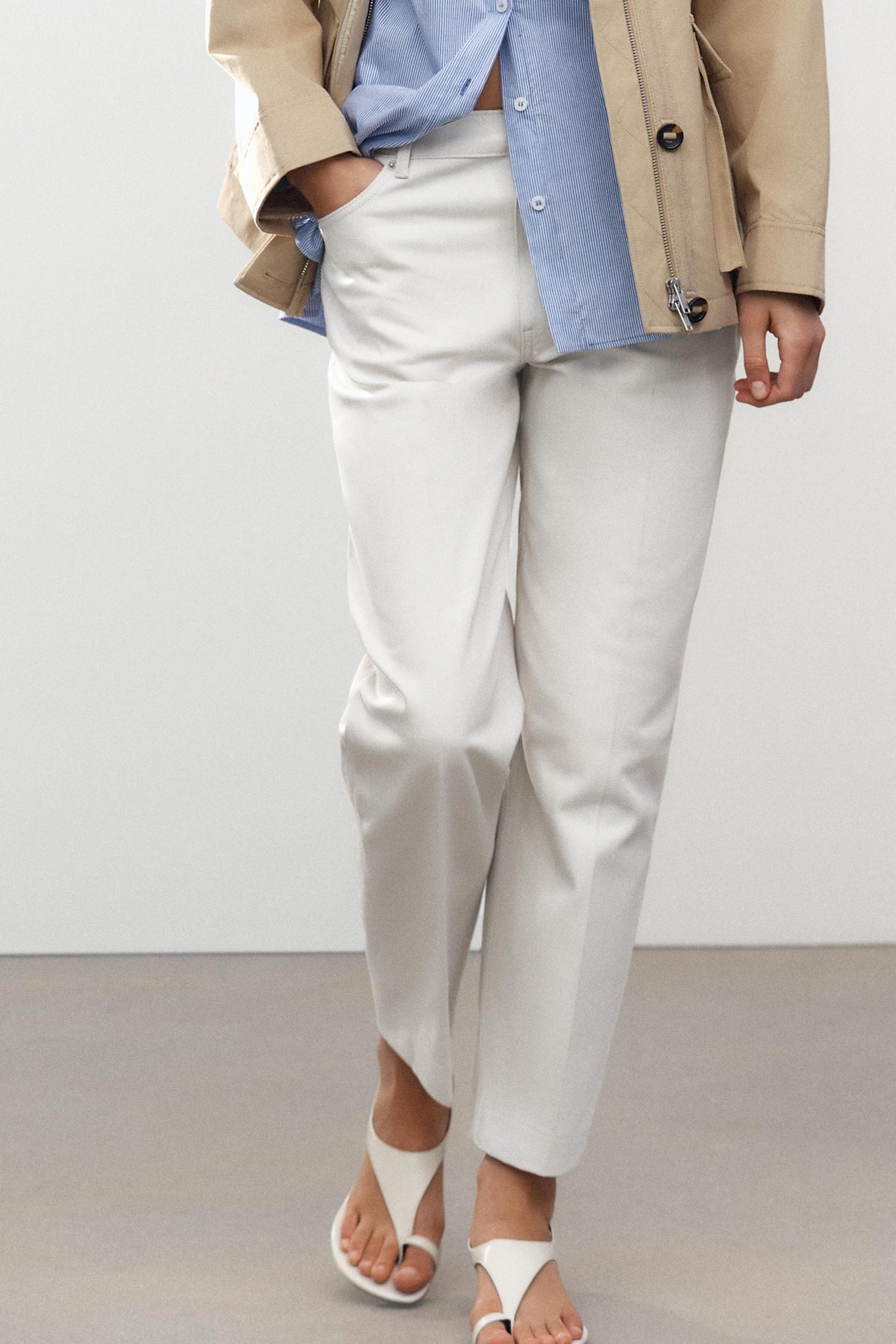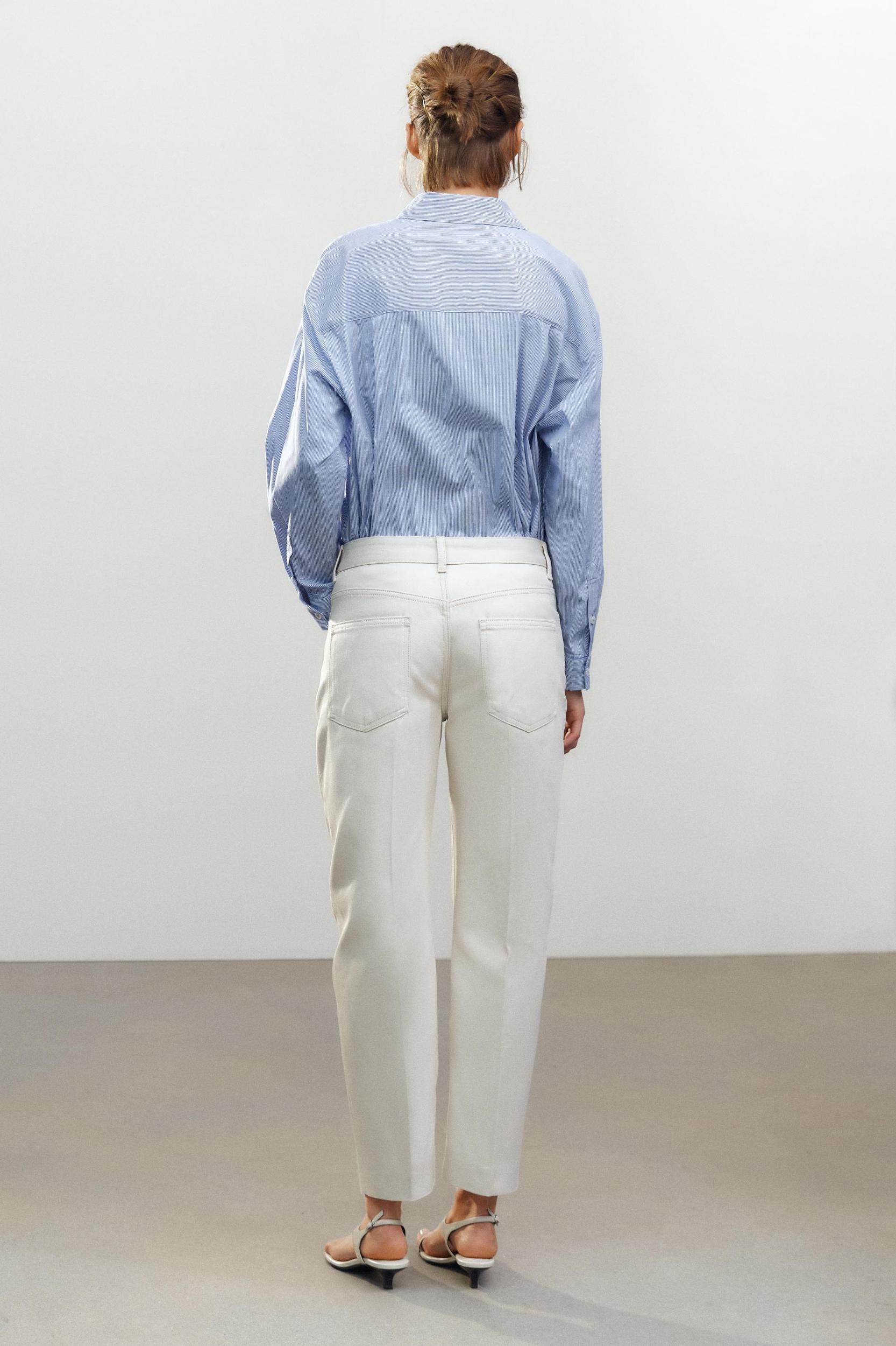 MID-RISE ZARA WOMAN COLLECTION Mid-rise jeans with belt loops. Five pockets. Front crease detail. Front zip and button closure.
