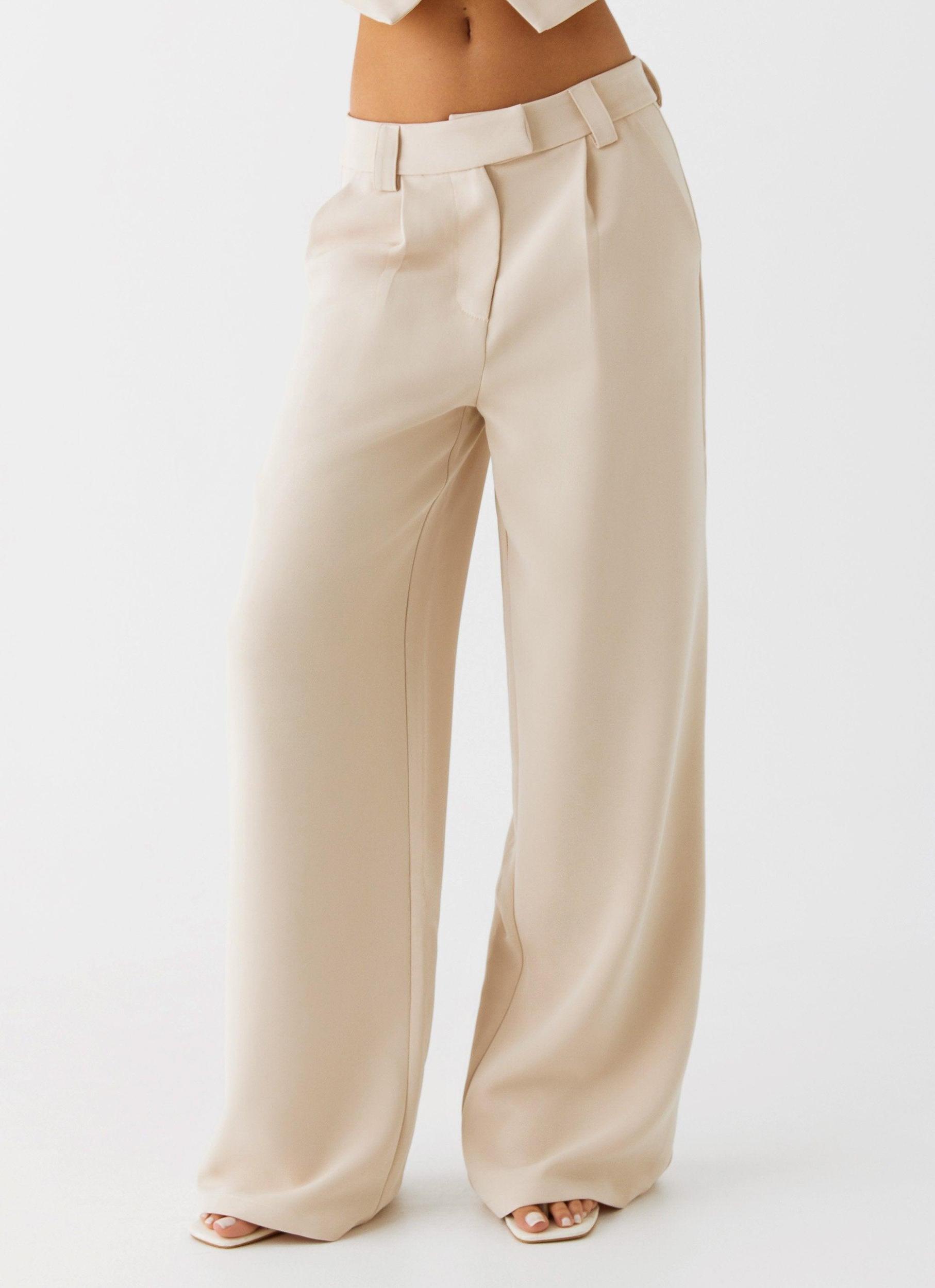 Peppermayo Exclusive Step into sophistication with the "Midnight City Suit Pants." Designed with a flattering mid rise and featuring belt loops, these pants boast a wide leg fit that blends classic tailoring with modern flair. Perfect for day-to-night transitions, they embody effortless elegance for any occasion. - Tailored pants- Mid-rise- Fully lined- Fly front with hook and bar- Belt loops- Twin hip pockets- Wide leg-95% polyester 5% spandex L:100% polyester Size AU 8 / US 4 garment measurements: Waist: 74 cm / 29.1 inHip: 104 cm / 40.9 inInner seam: 158 cm / 62.2 inOuter leg: 108.5 cm / 42.7 inHem: 60 cm / 23.6 in Olivia is 170cm and wearing a size AU 8 / and US 4