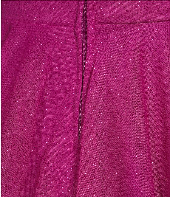 From Midnight Doll, this dress features: Glitter-accented sheer matte jersey fabrication V-neckline Sleeveless Wide shoulder straps Full, pleated triple-tier skirt Zippered back Self and lining of polyester Hand wash/line dry Imported.