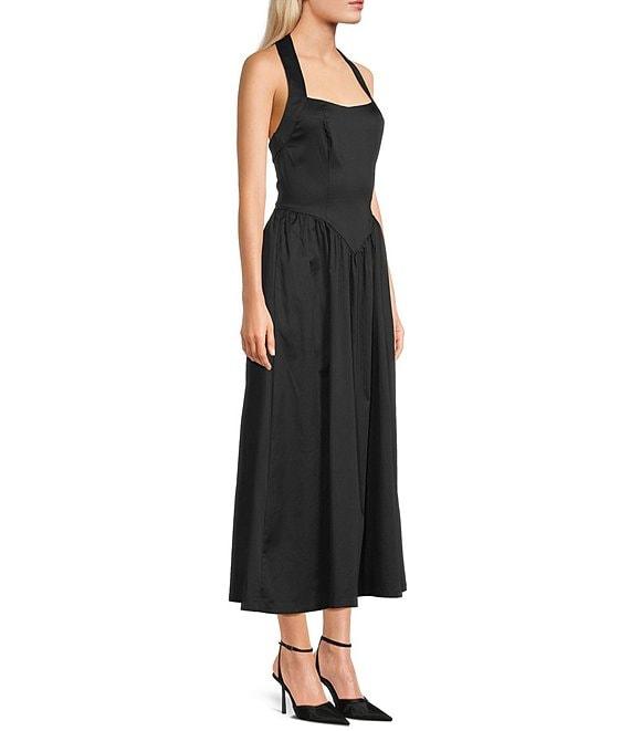 Midnight Doll Sateen Halter Neck Maxi Dress