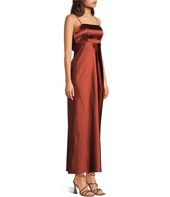 Midnight Doll Satin Square Neck Drape Back Long Dress