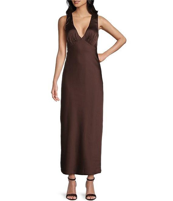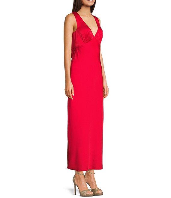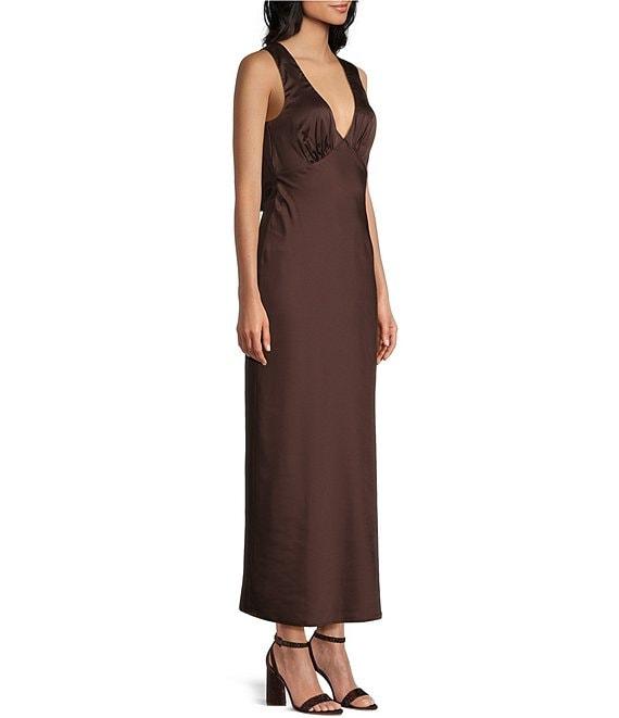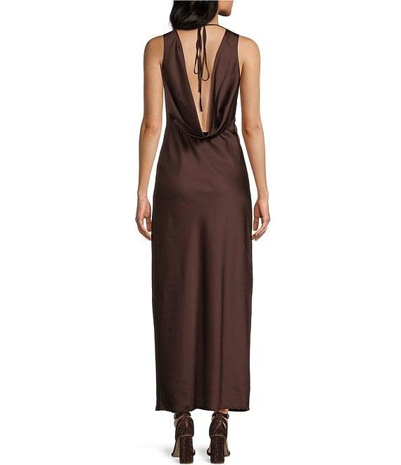 Midnight Doll Satin V-Neck Sleeveless Back Drape Dress