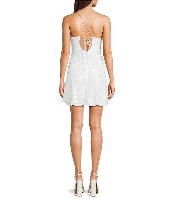 From Midnight Doll, this dress features: Sequin beaded floral-patterned mesh fabric V-neckline Sleeveless Rhinestone-embellished shoulder straps Zip-up and tie-back closure Polyester/spandex with polyester lining Hand wash/lay flat to dry Imported.