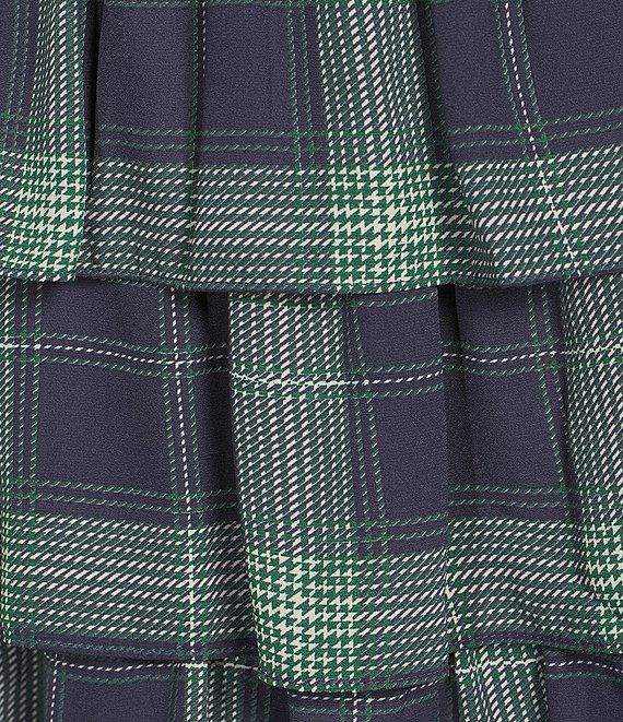 Midnight Doll Smocked Plaid Puffed Sleeve Ruffle Tiered Maxi Dress