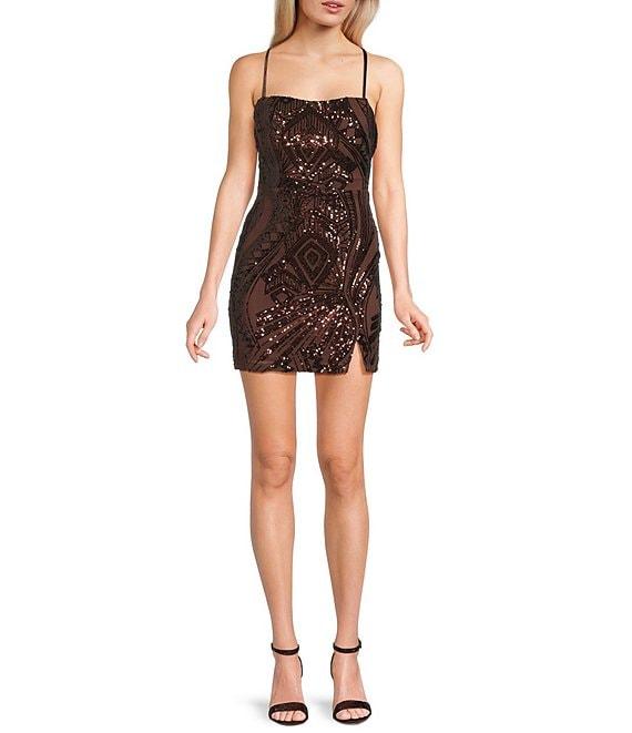 Midnight Doll Spaghetti Strap Placement Sequin Strappy Back Bodycon Mini Dress