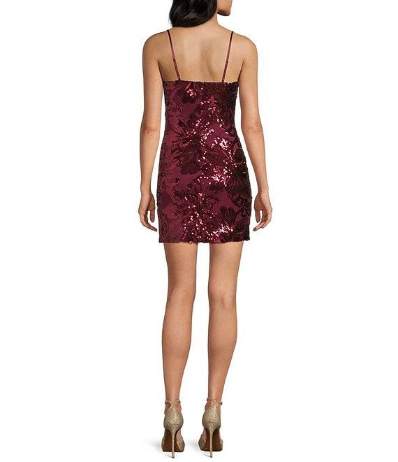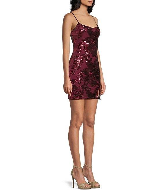 Midnight Doll Spaghetti Strap Scoop Neck Floral Sequin Pattern Bodycon Dress