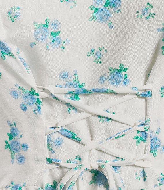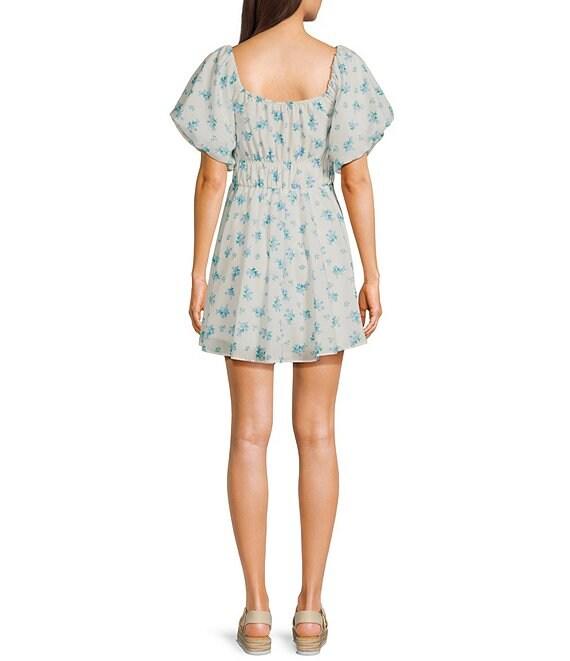 From Midnight Doll, this dress features: All-over ditsy floral printSquare neckShort puff sleevesFront tie detailPull-on styling34" lengthPolyesterMachine wash/tumble dryImported.