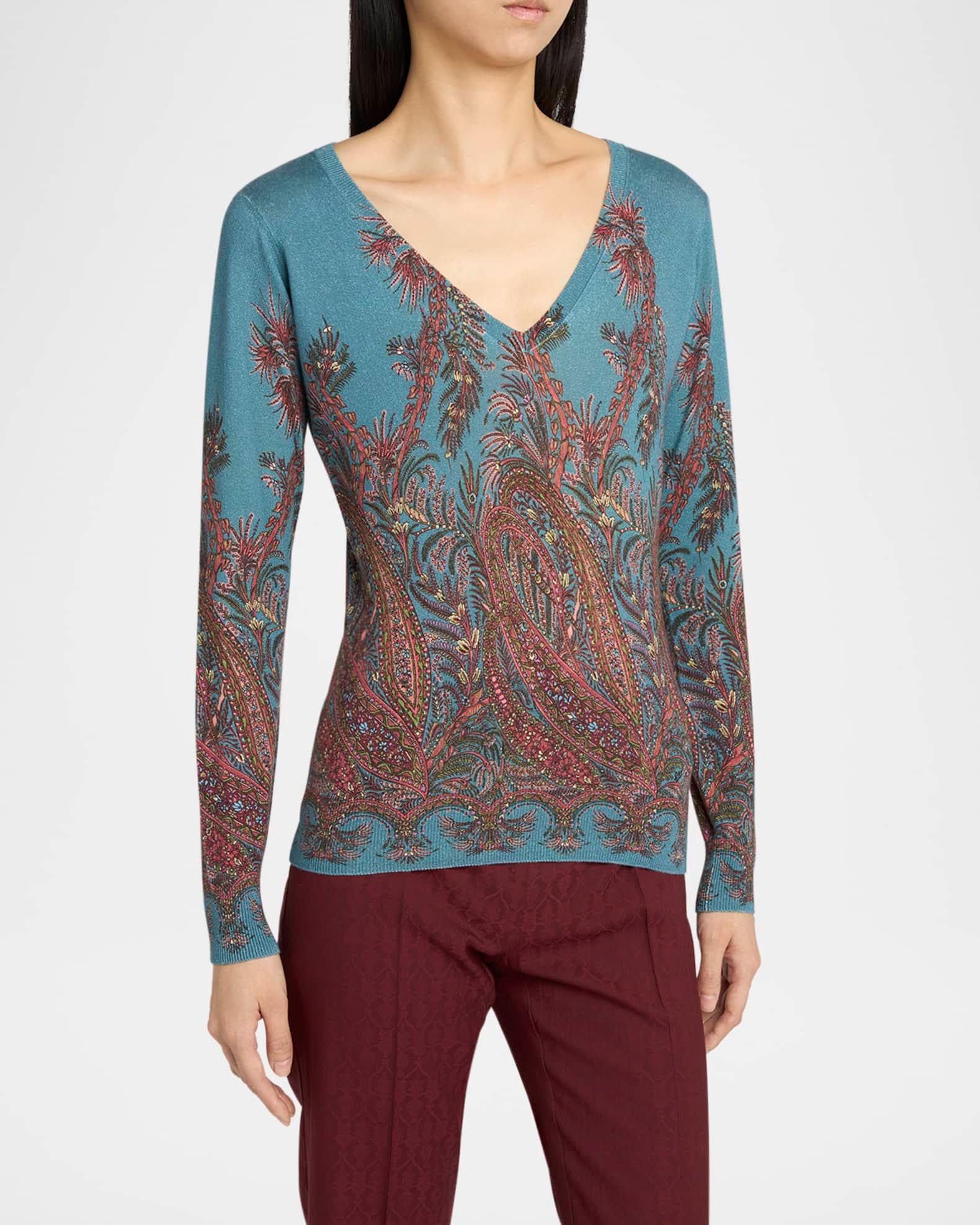 Midnight Dream Printed V-Neck Sweater