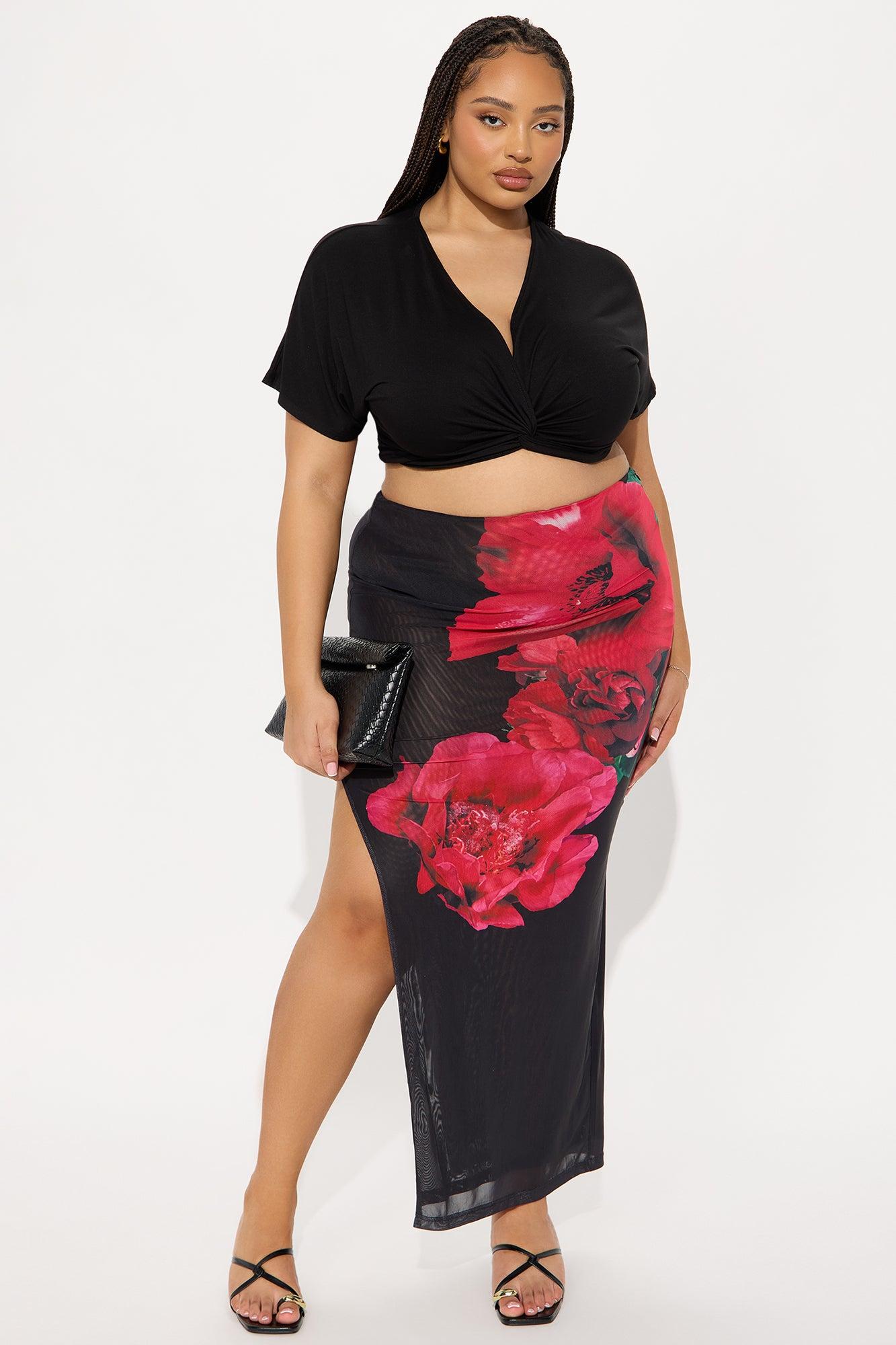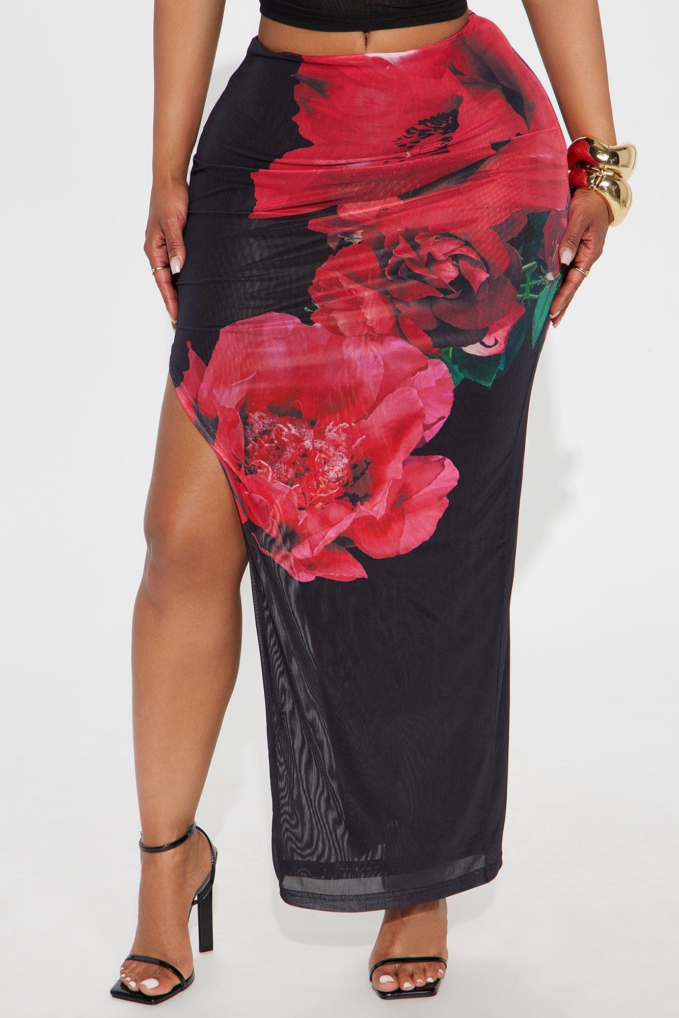 Midnight Hour Floral Mesh Maxi Skirt - Black/combo Female