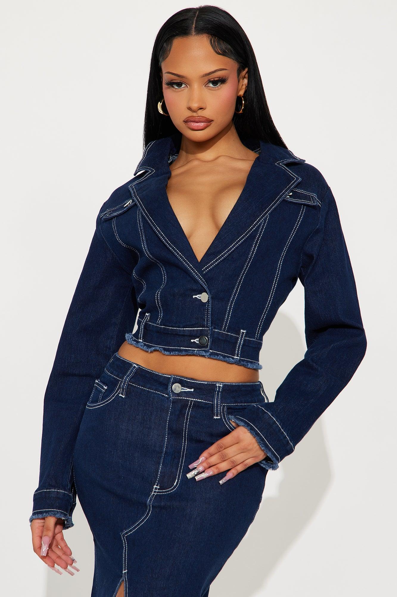 Midnight Mood Denim Trench Mini Skirt Set - Dark Wash Female