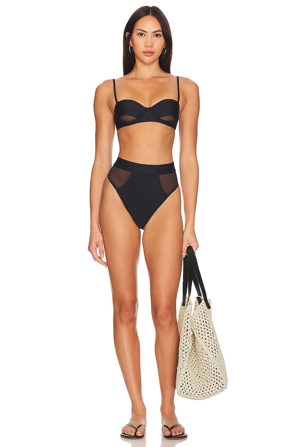 Self: 84% nylon, 16% elastaneContrast Fabric: 89% polyester, 11% elastane. Made in China. Hand wash. High waist design. Mesh paneling. Item not sold as a set. Revolve Style No. LOVF-WX1345. Manufacturer Style No. LFX1360 S24.