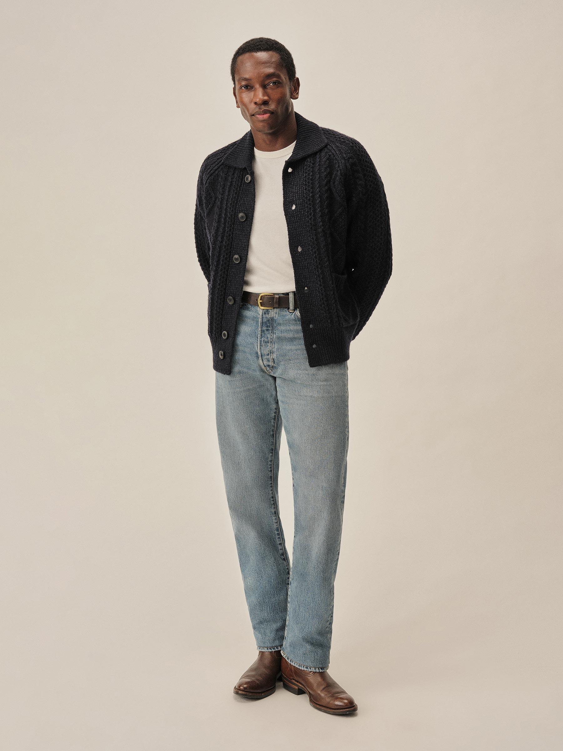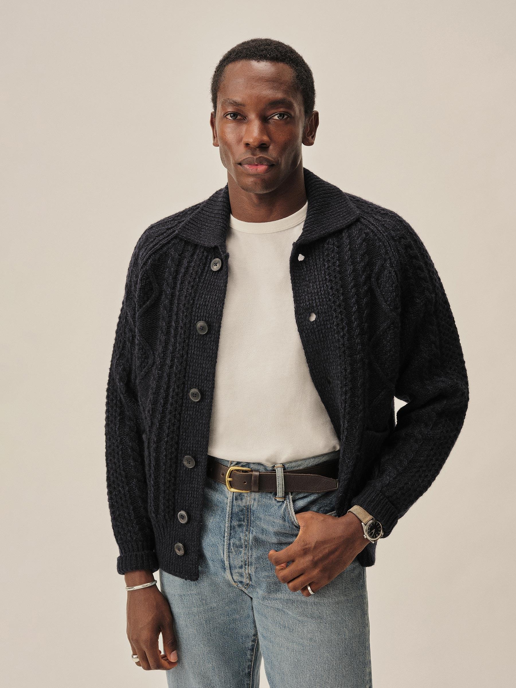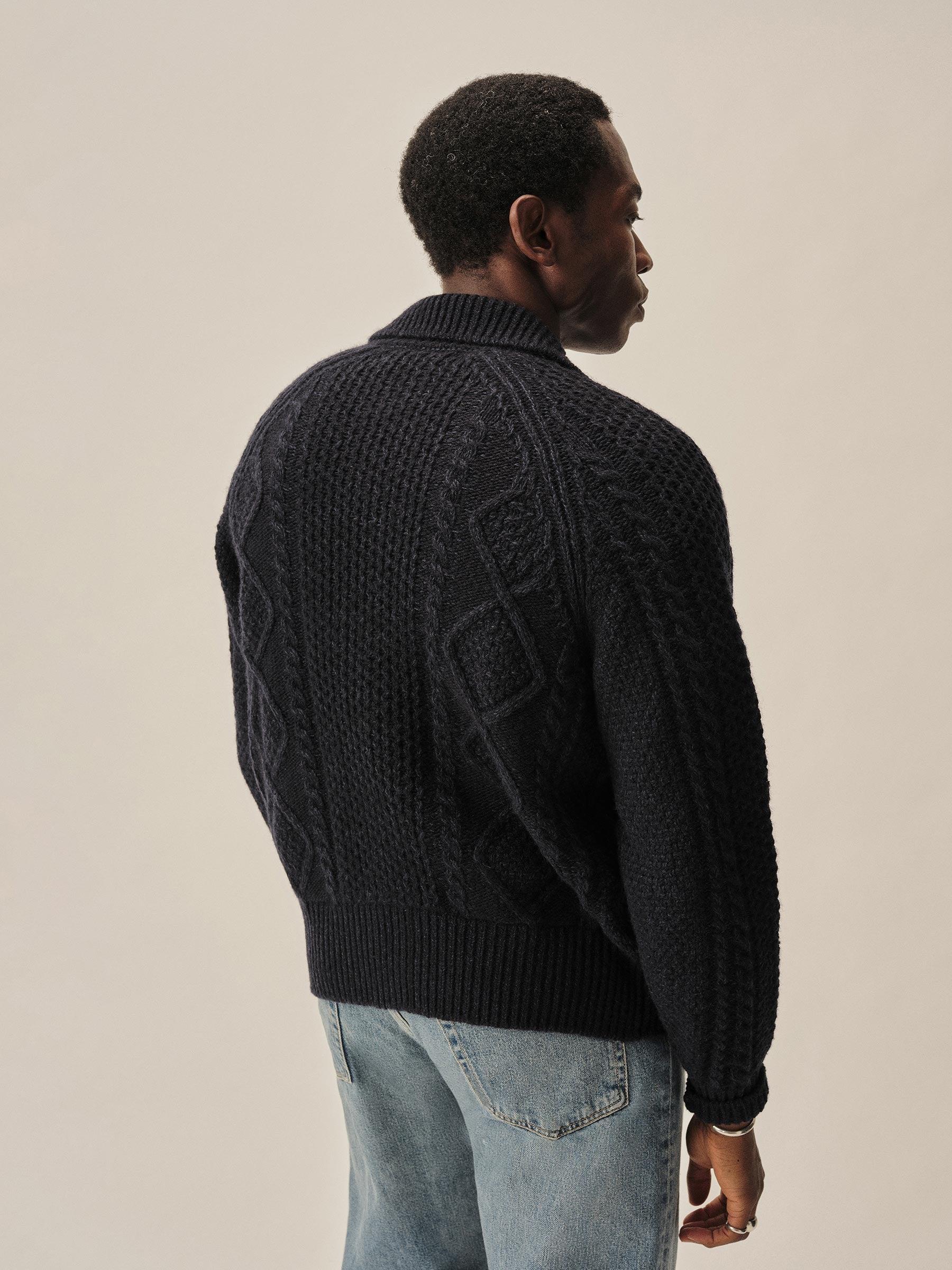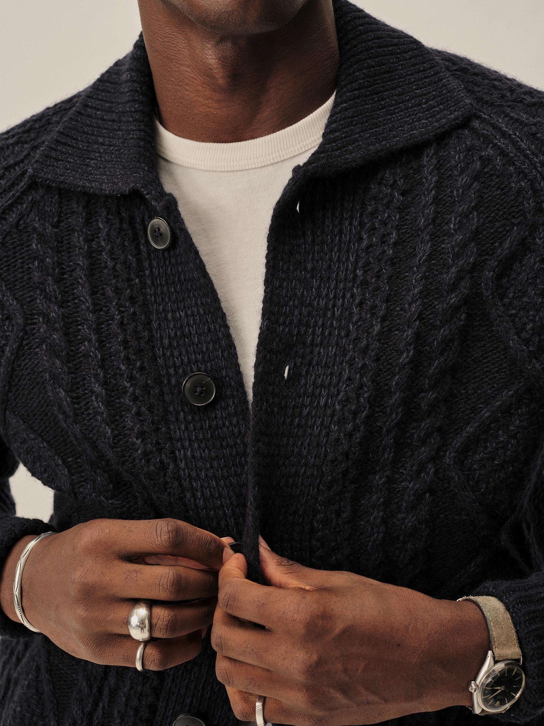 Midnight Seastack Wool Tweed Cable Cardigan