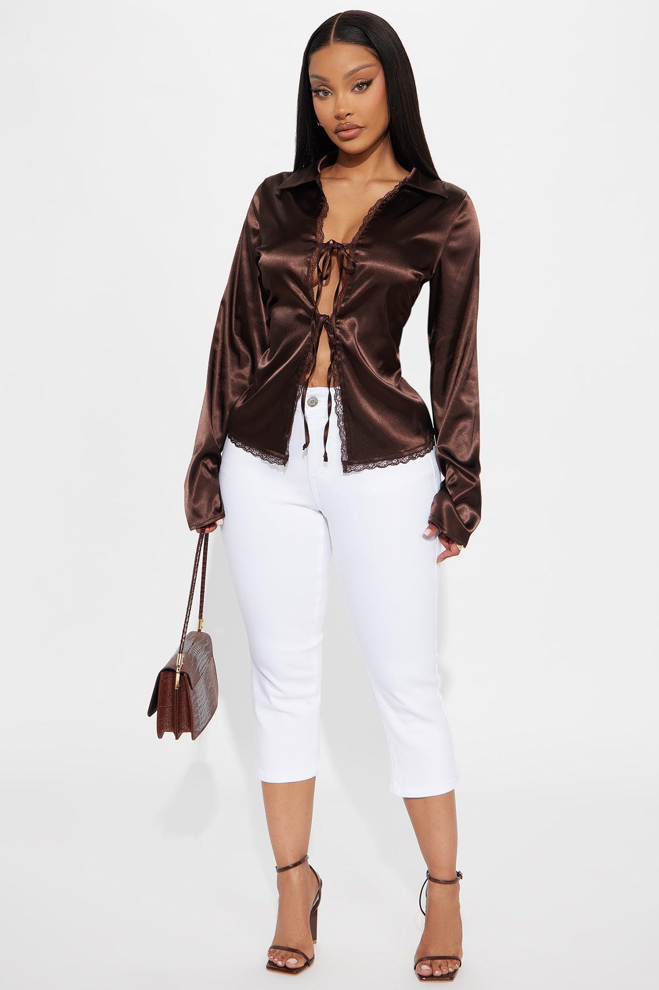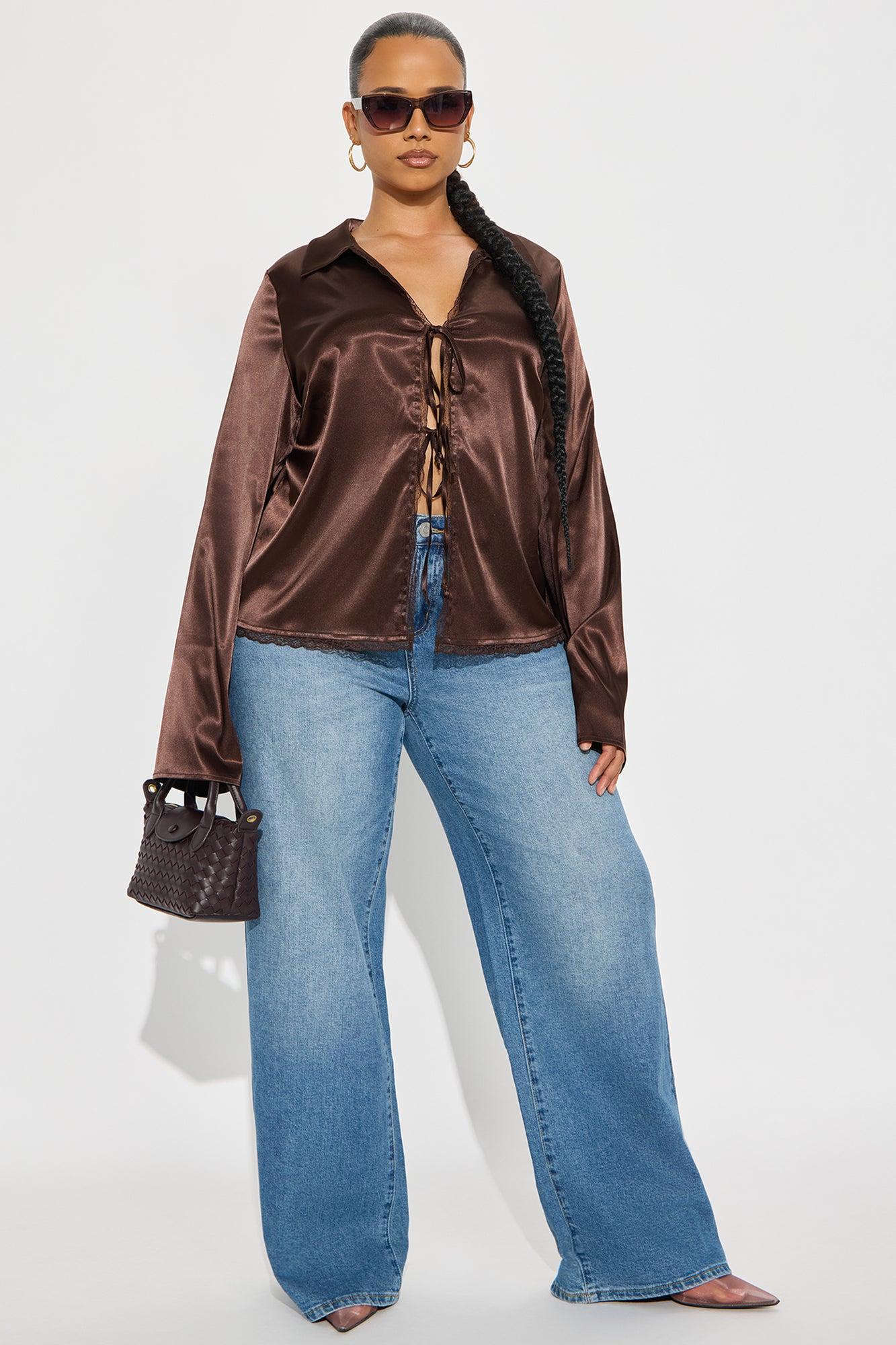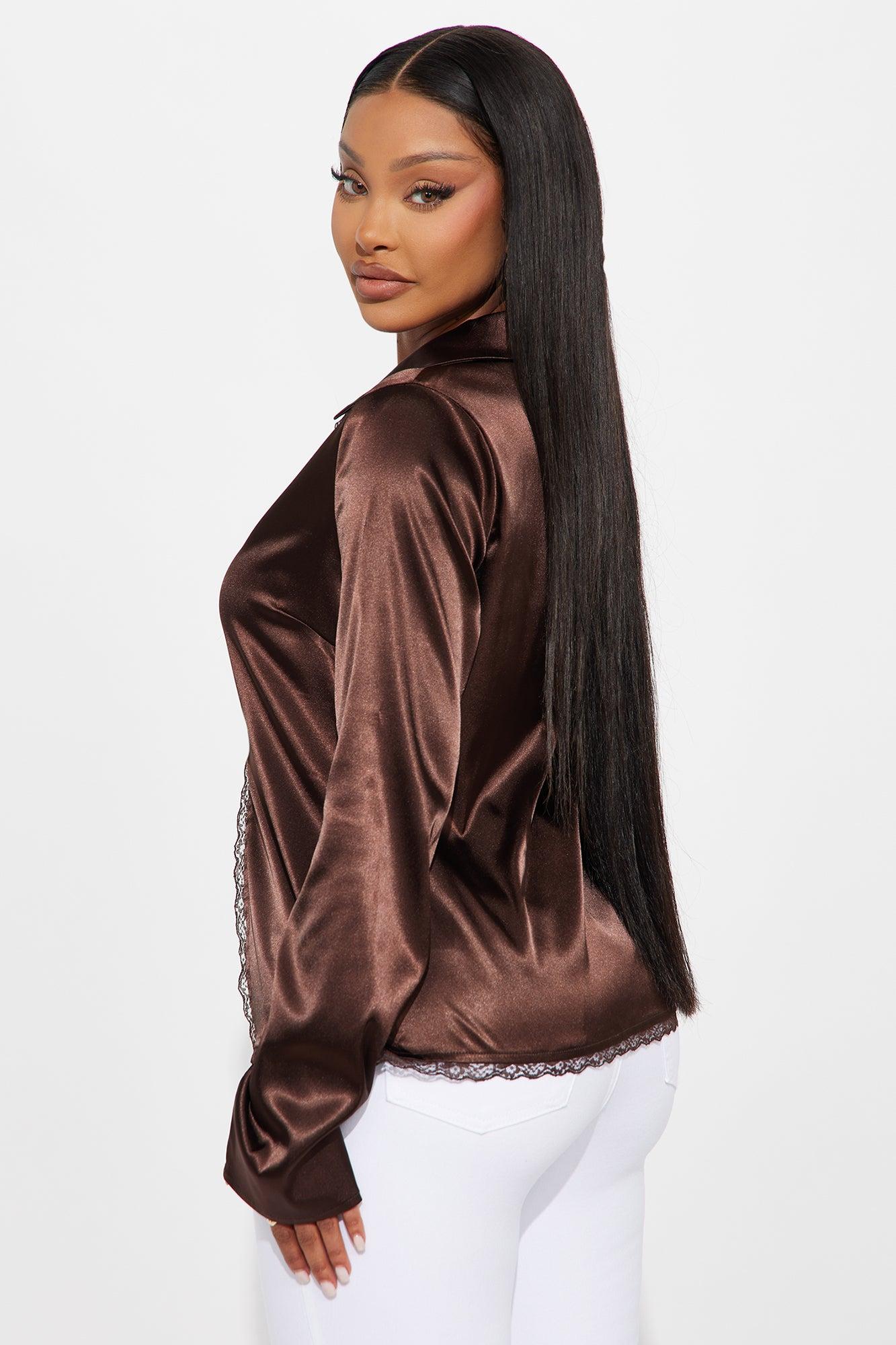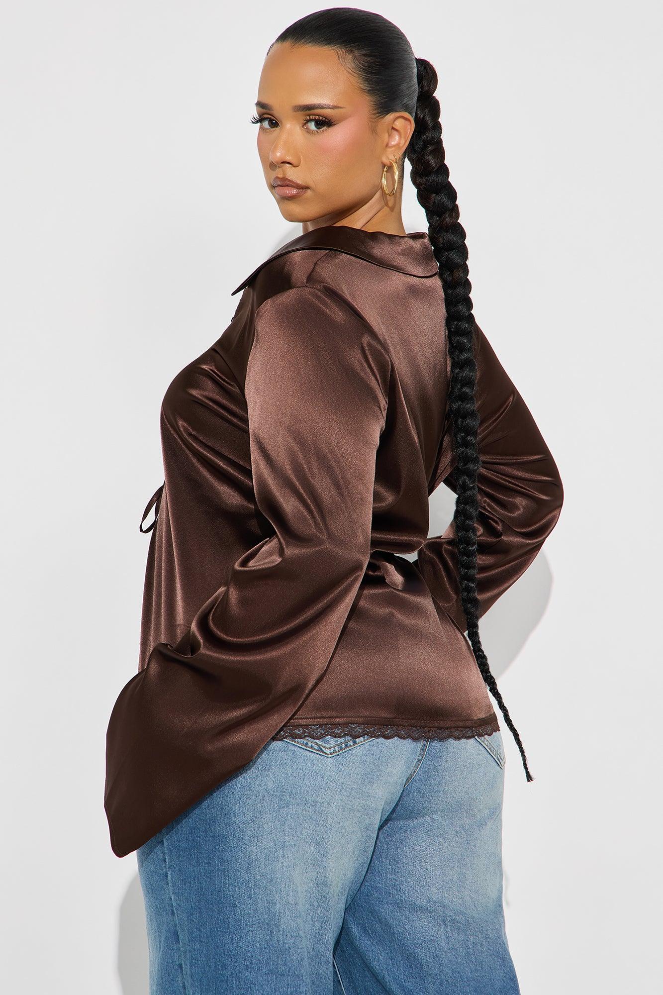 Midnight Snack Tie Front Satin Blouse - Chocolate Female