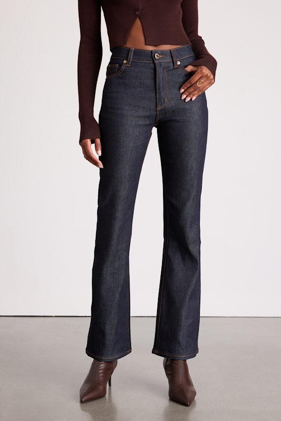 Chic dark wash denim, with subtle stretch for the most comfortable fit, shapes these mid-rise jeans by Rolla's that are ready to be endlessly styled. The classic bootleg silhouette features full-length, subtly flared hems, along with a classic five-pocket cut and belt loops. Branded button above a hidden zip fly.