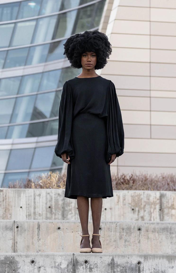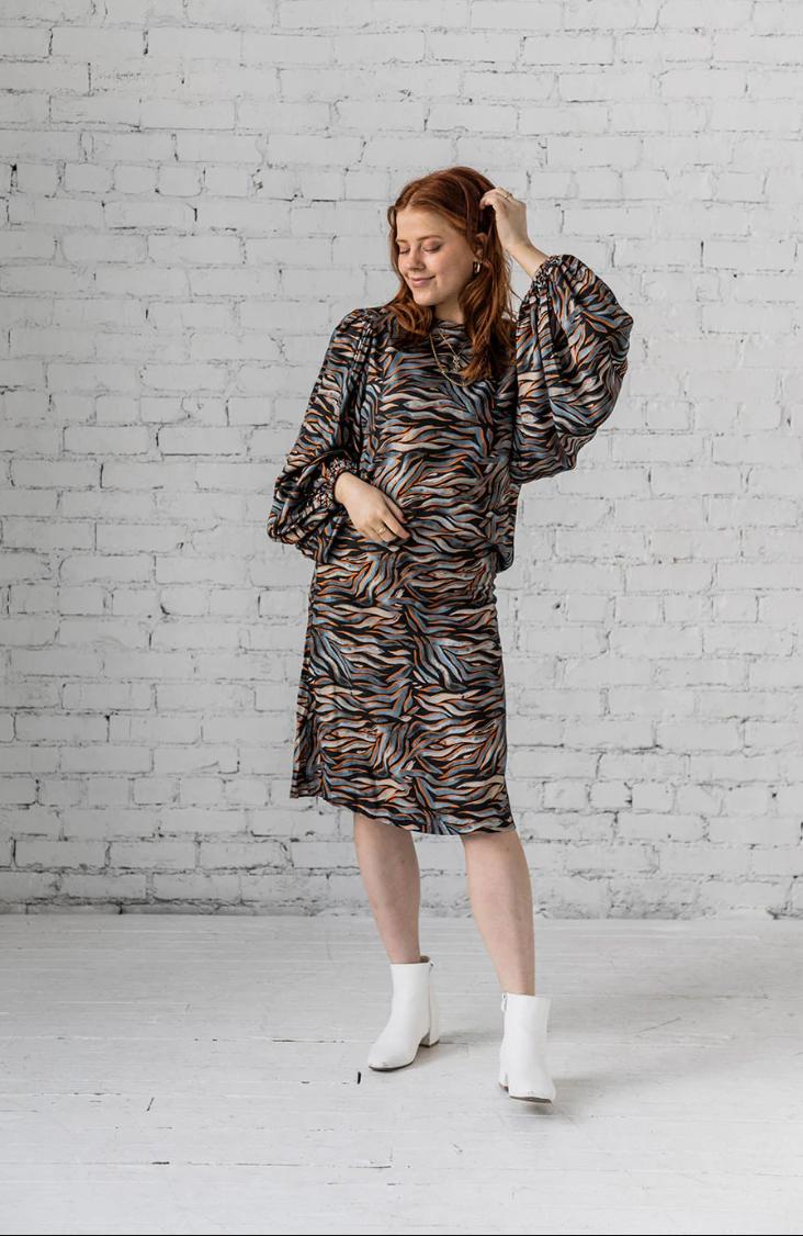 A soft A line skirt to complete the Haya set. A perfect match for a dramatic top. Skirt has a side invisible zipper and elastic top for comfort.
