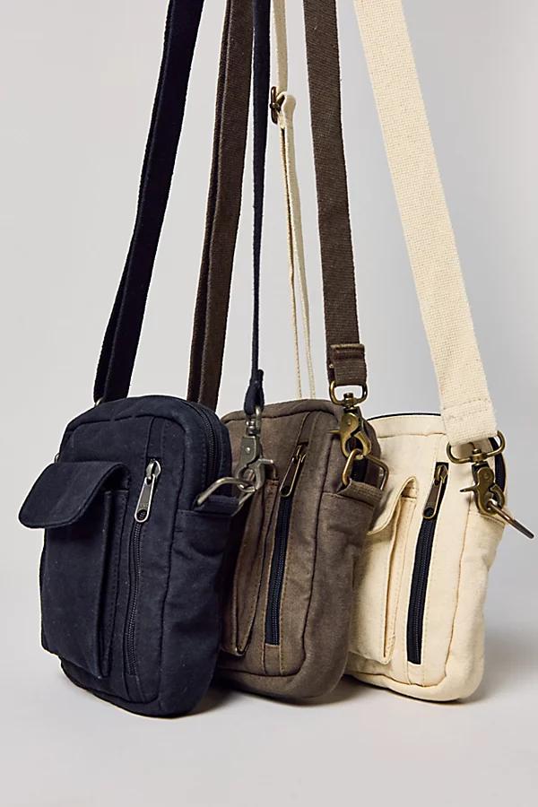 Canvas zip pouch with an adjustable shoulder strap. Mini bag fitted with a utility flap pocket. Features Mike mini canvas crossbody pouch Mini canvas shoulder bag Zippered pockets Utility look Cotton canvas Adjustable shoulder strap Content + Care 100% Cotton Spot clean Imported Mike Mini Canvas Crossbody Pouch in Black, Mens at Urban Outfitters
