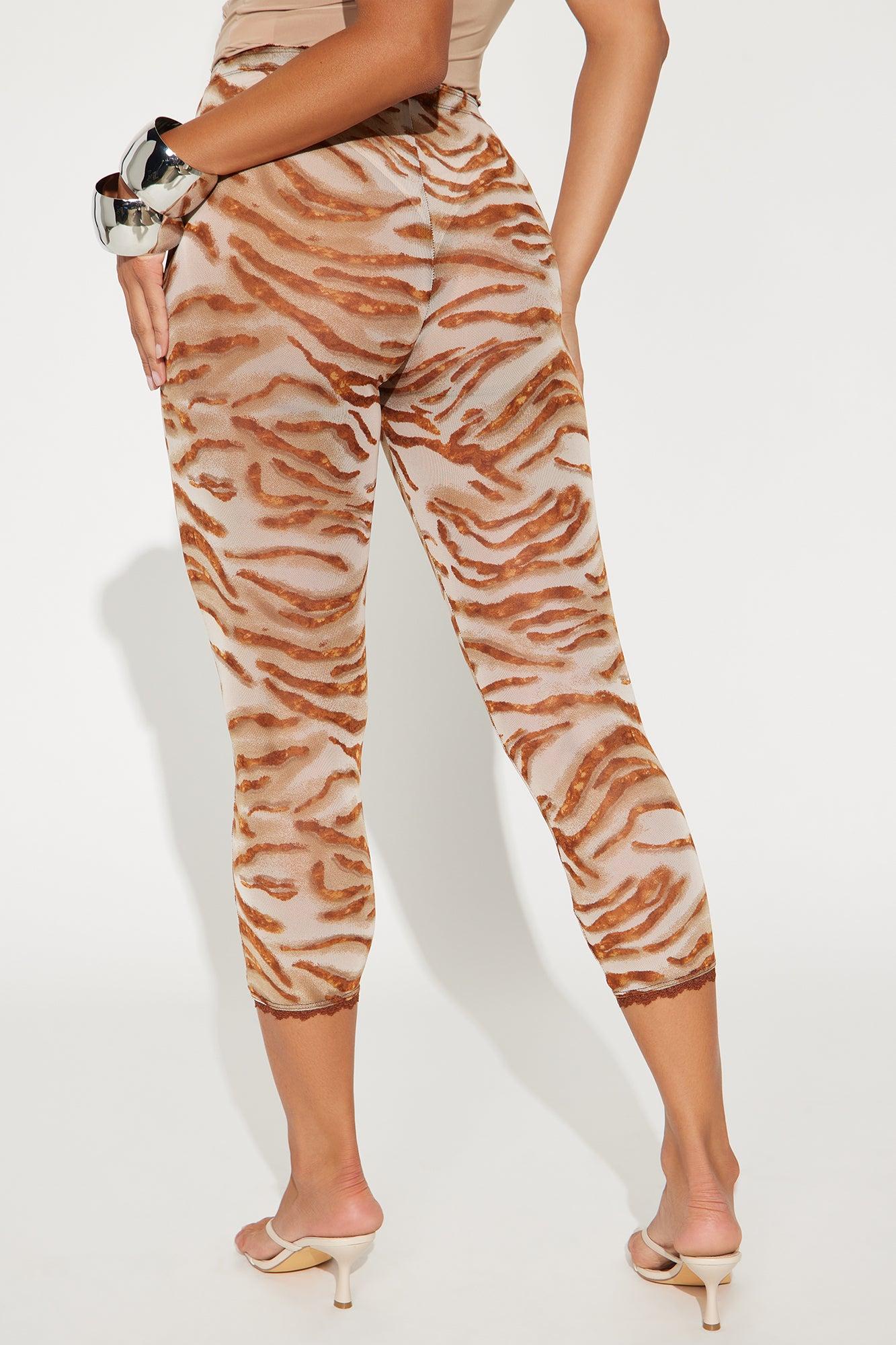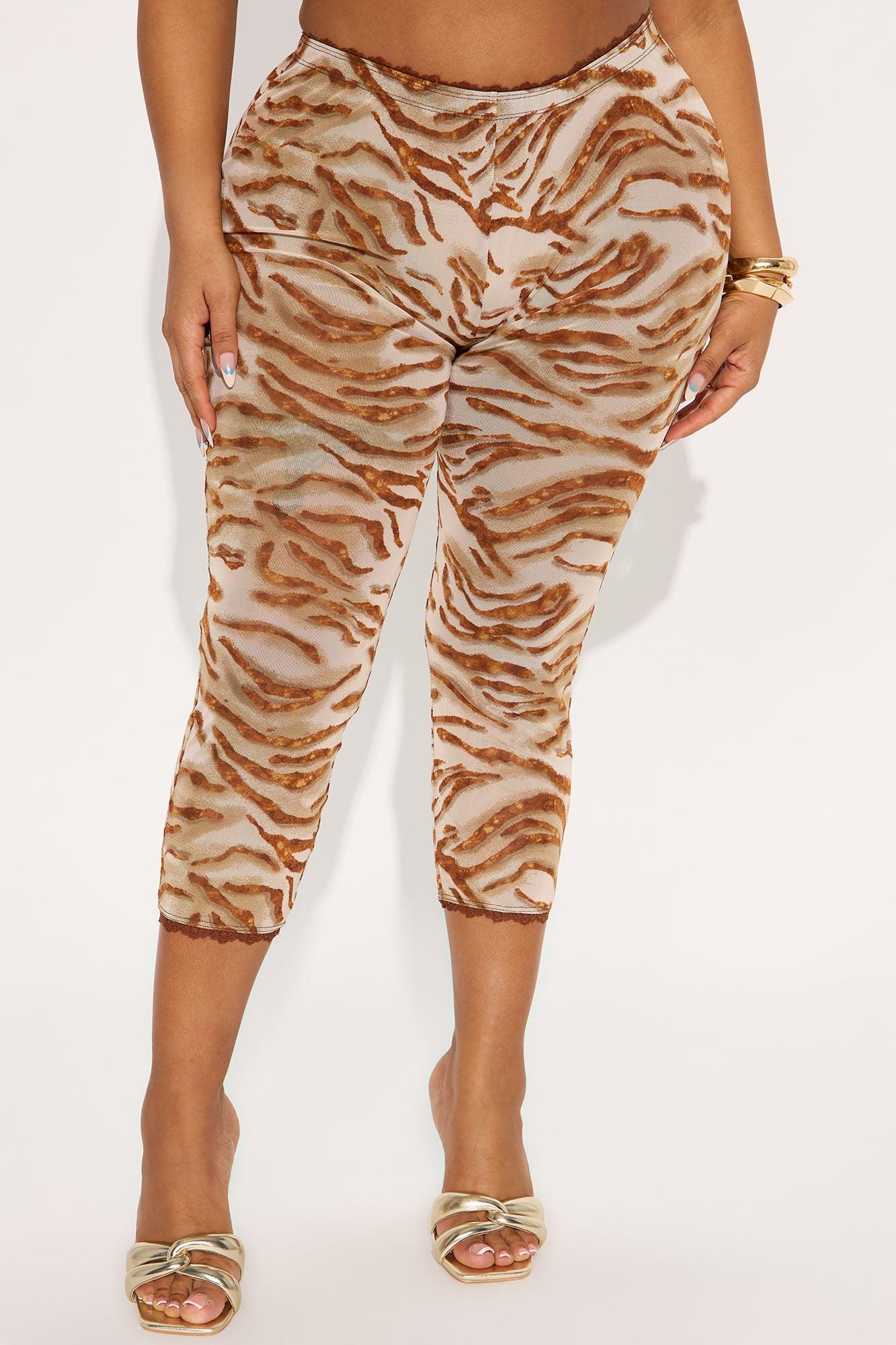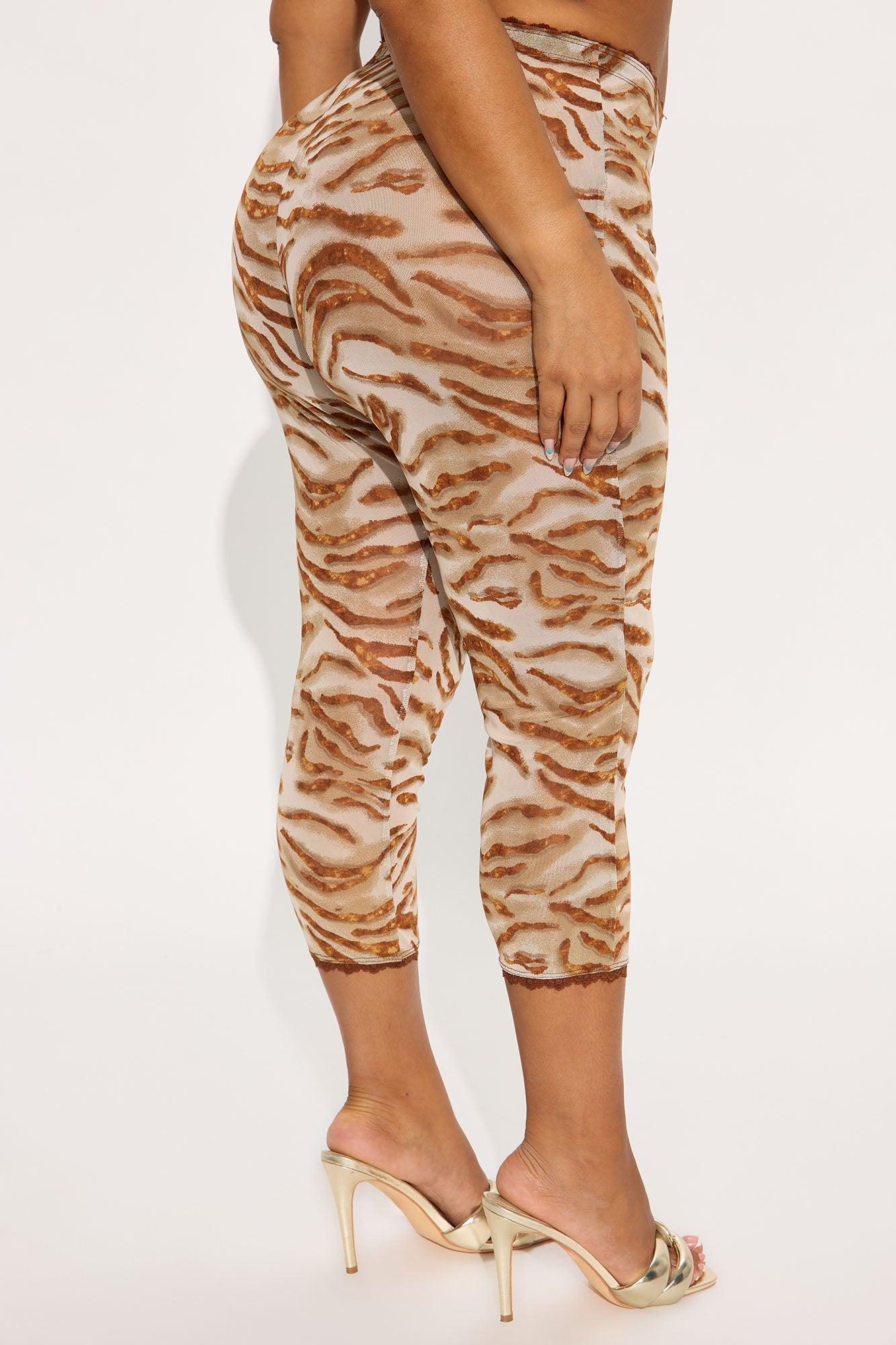 Mila Animal Print Mesh Capri Legging - Tan/Multi