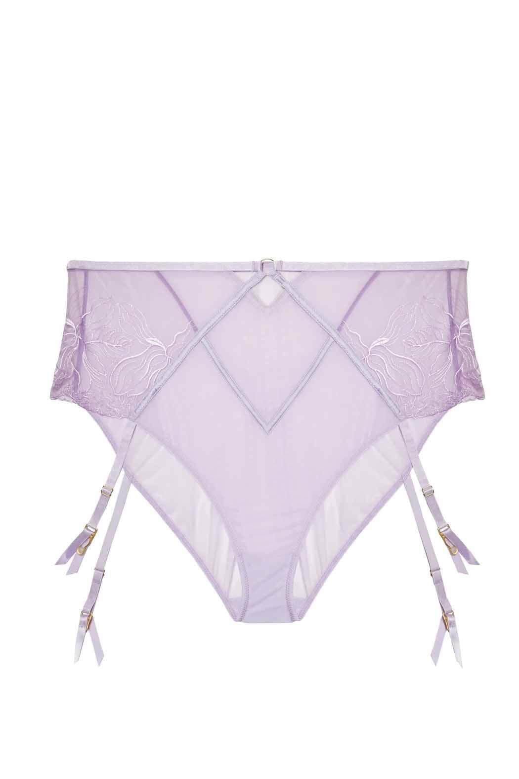 Step out of your comfort zone and step up your lingerie collection with the Mila Lace High Waisted Suspender Brief. This lacy brief will hug and flatter all your lovely curves, making you feel sexy without sacrificing an ounce of comfort. Featuring a gorgeous lilac lace detailing, an elasticated waistband, 4 adjustable and removable (yes please!) suspender straps, and a sheer back. Pair these with our matching Mila Lilac Lace Bra for a complete romantic and sexy look.