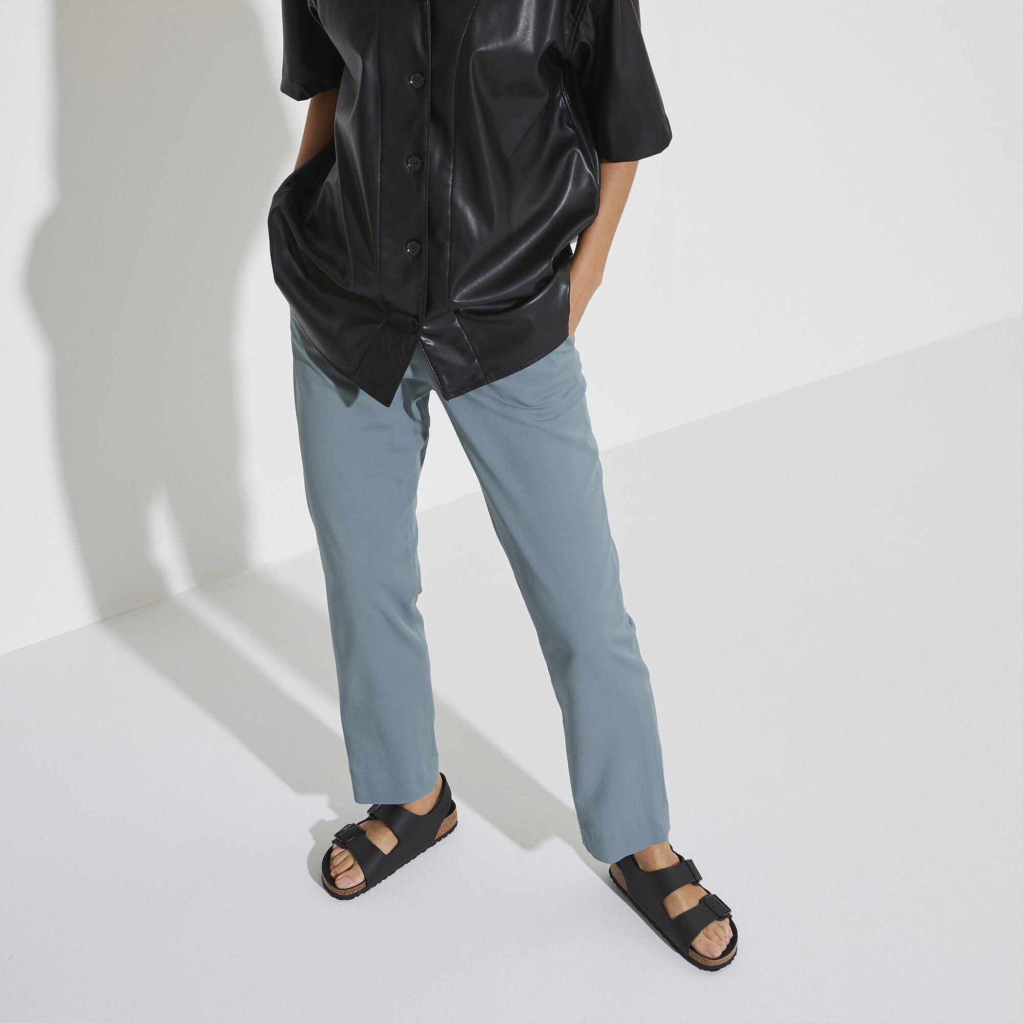 A classic, two-strap style from the front with added security in the back. The fashion favorite Milano sandal is updated in signature Birkibuc®, giving the upper a distinct surface character. With an original contoured footbed for support, it'll feel uniquely yours wherever you take it.