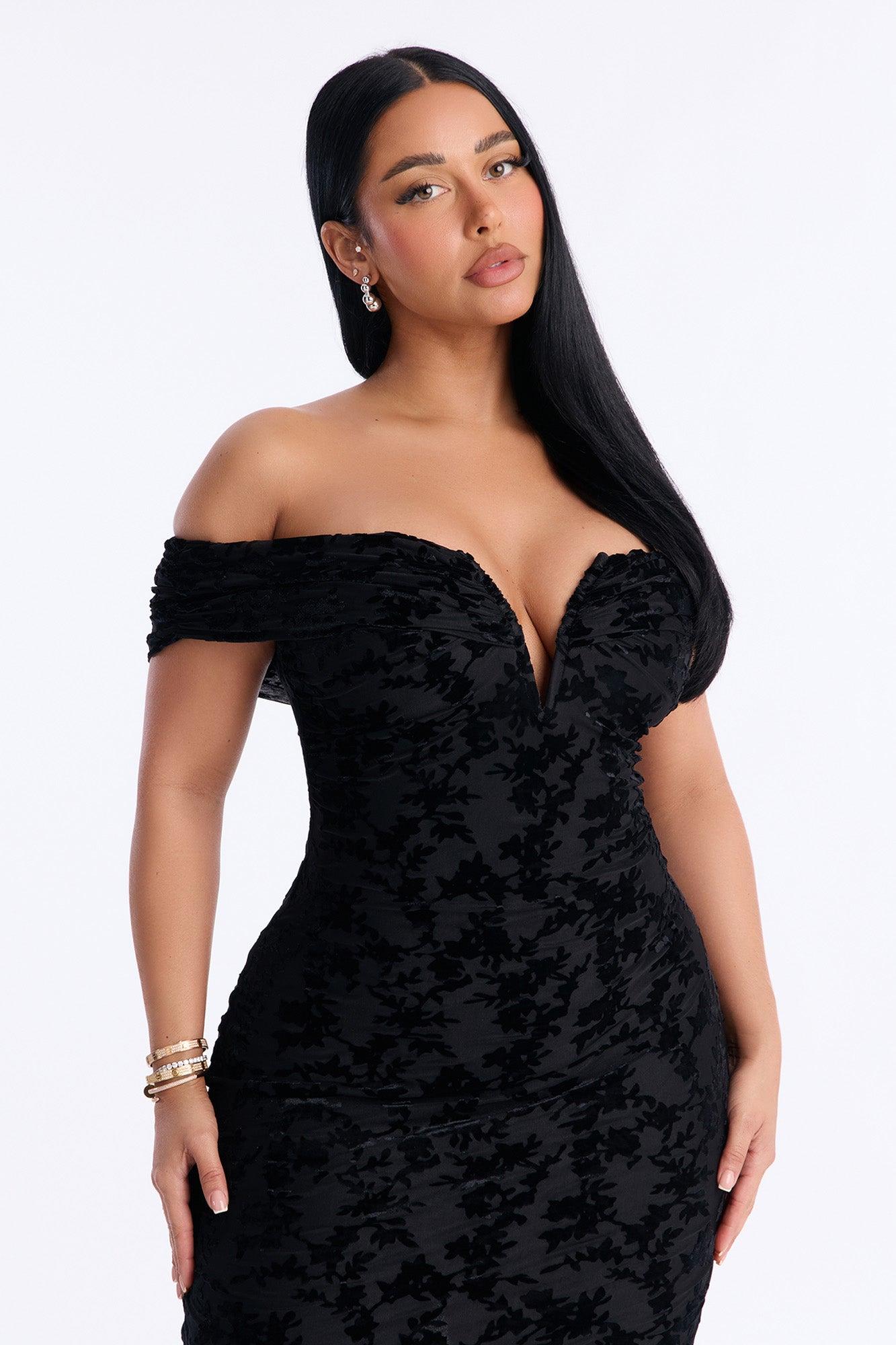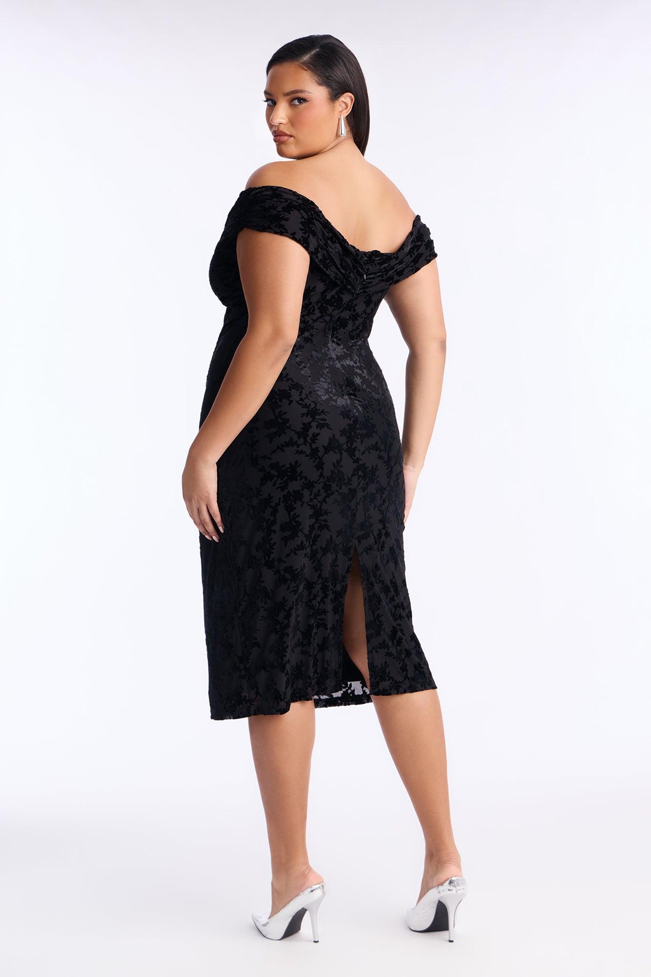 Milena Flocked Mesh Midi Dress - Black Female