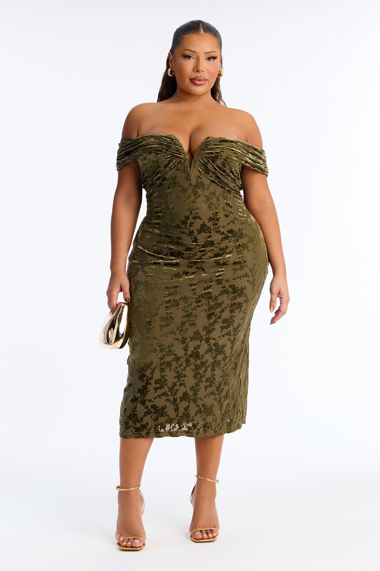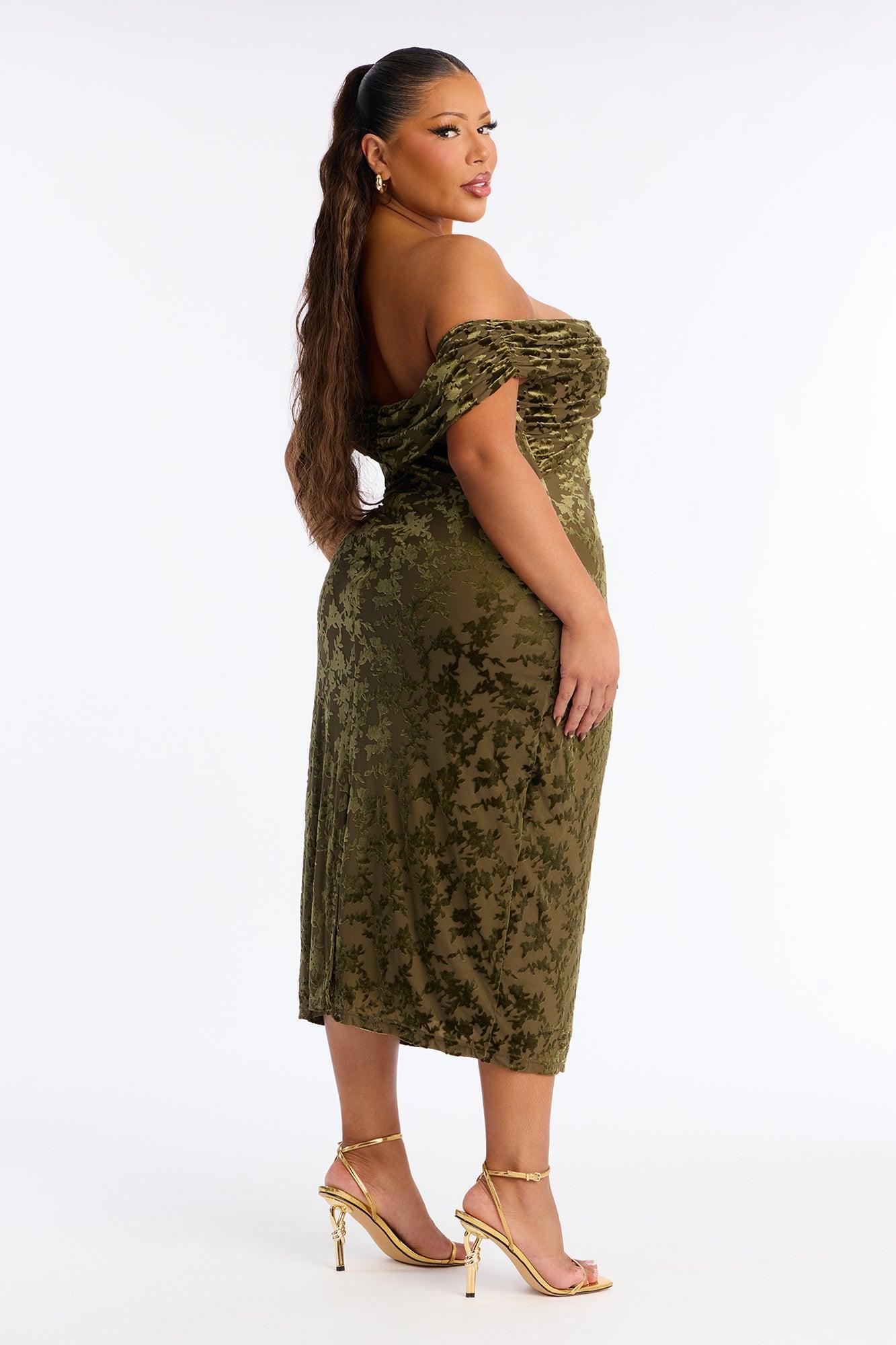 Milena Flocked Mesh Midi Dress - Olive Female
