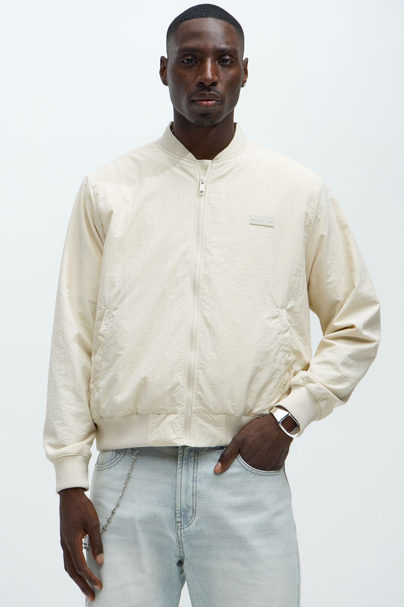 Miles Nylon Full Zip Bomber Jacket - Off White