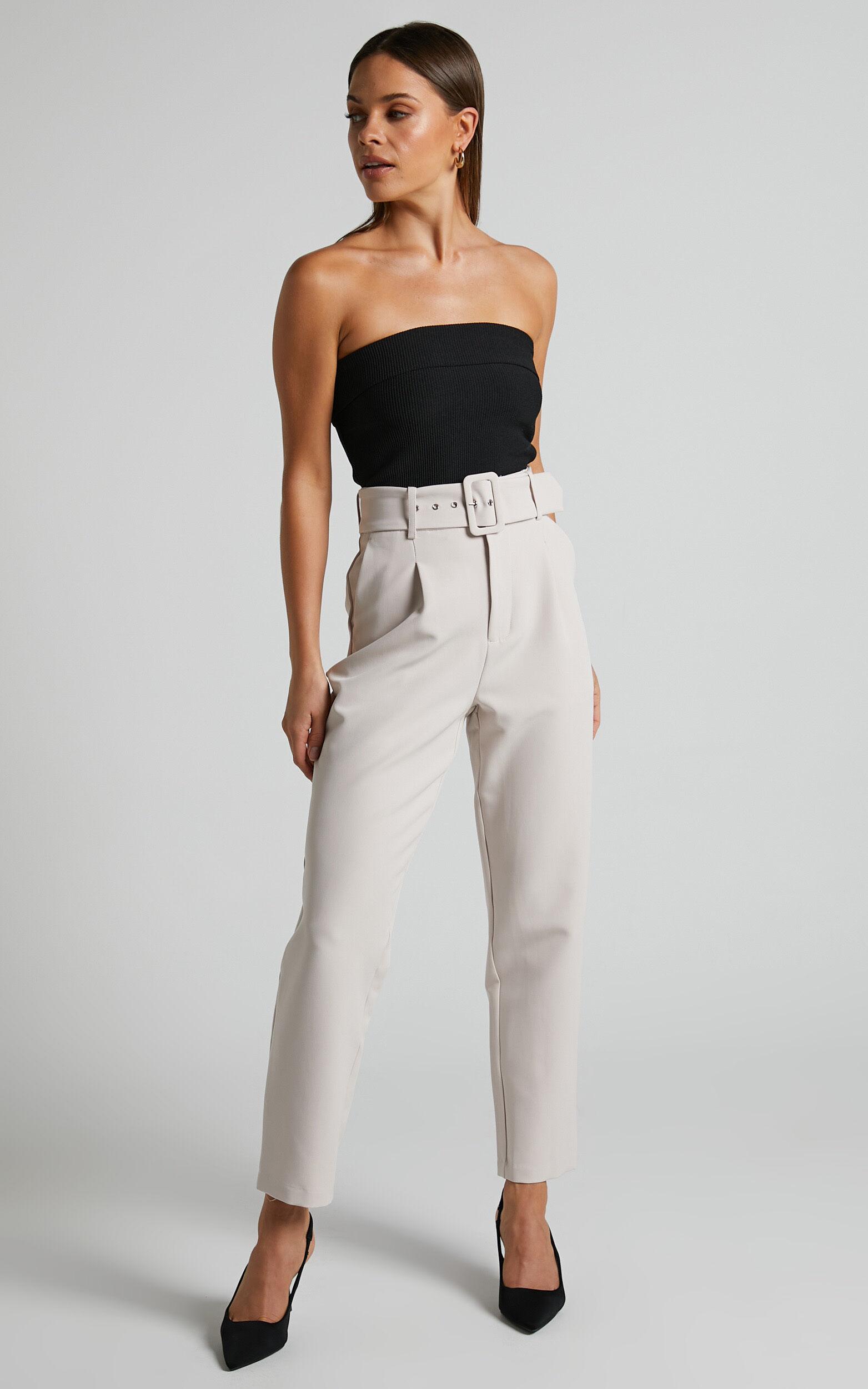 Get ready to turn heads and make a statement with our Milica Trousers! These belted high waisted trousers in beige offer the perfect combination of sophistication and fun. The tailored pants feature a flattering high waist, full length legs, and neutral color that makes them versatile for both workwear or summer outings.Elevate any outfit with these stylish pants that are sure to leave you feeling confident and chic. Don't wait any longer, add the Milica Trousers to your fashion collection today!