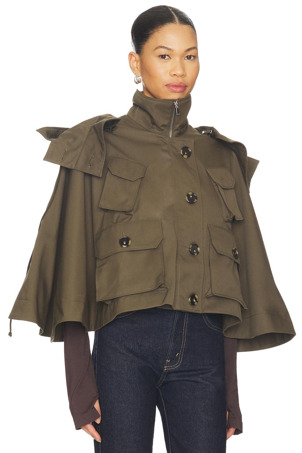 Self: 59% polyester, 28% cotton, 13% polyurethaneLining: 100% cupro. Made in Poland. Dry clean. Front button closure. Front patch pockets. Waterproof cotton twill fabric. Detachable and adjustable hood. Revolve Style No. VLAR-WO9. Manufacturer Style No. FW25CO026KHAKI.