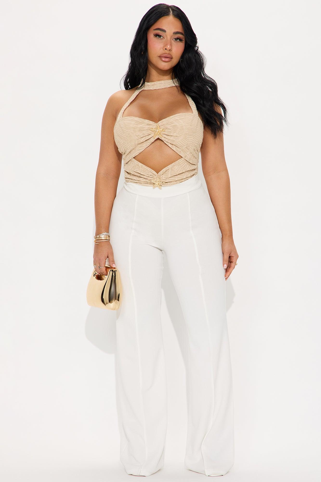 Available In Black And Sand. High Neck Bodysuit Stretch Button Neck Closure Cut Out Hardware Ruched Cheeky Bottom Snap Closure Self: 97% Polyester 3% Spandex Lining: 100% Polyester Imported California Proposition 65WARNING: Cancer and Reproductive Harm - www.P65Warnings.ca.gov.