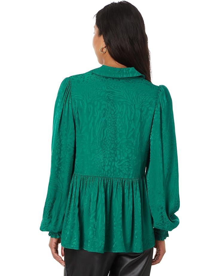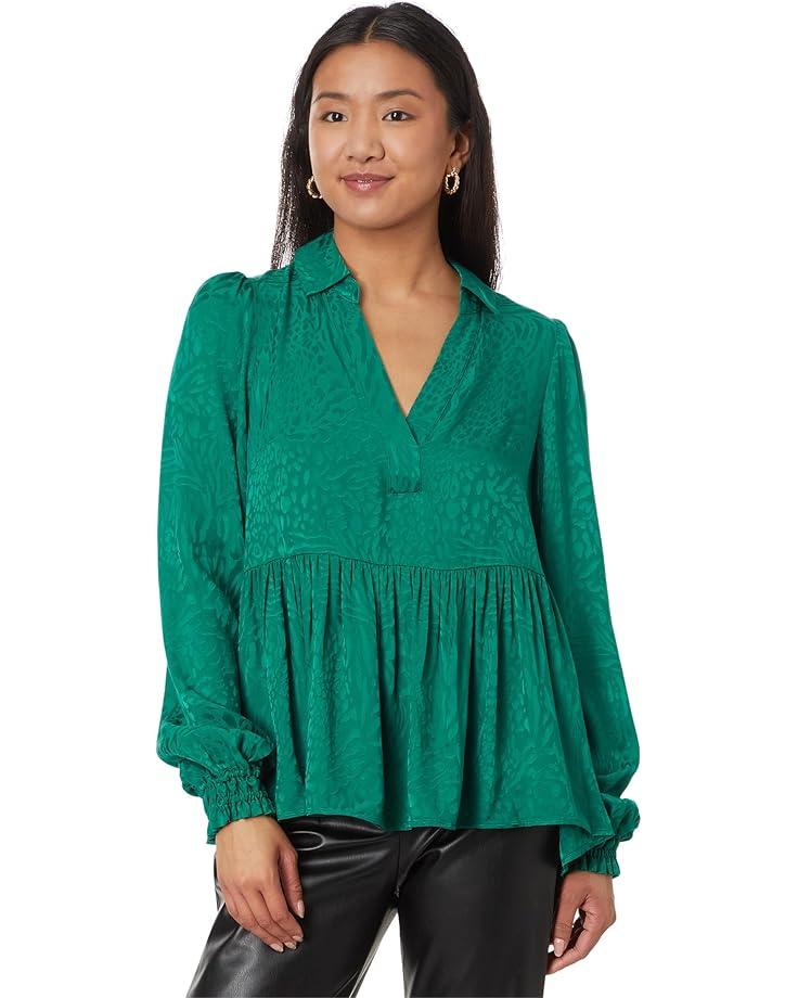 Indulge in a burst of vibrant elegance with Lilly Pulitzer® Jaylene Long Sleeve Jacqu. Elevate your wardrobe with its easy-fit silhouette, adorned with a chic collar, half placket, and long sleeves with elastic cuffs. The tall hem ruffle adds a playful touch, while its roomier fit gracefully skims the body.