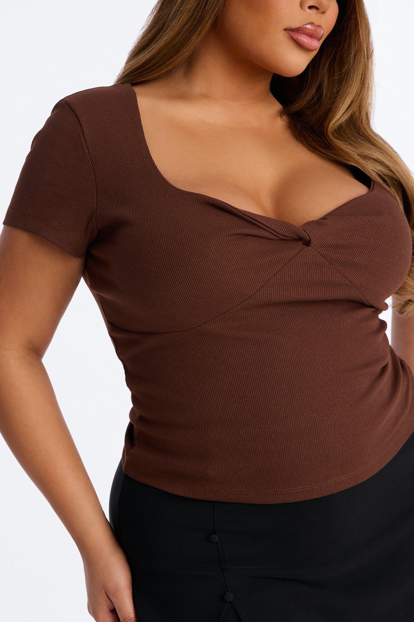 Millie Padded Twist Short Sleeve Top - Brown Female
