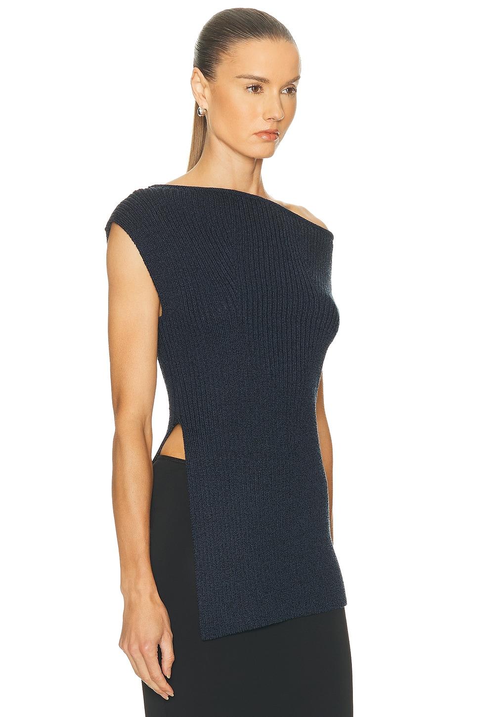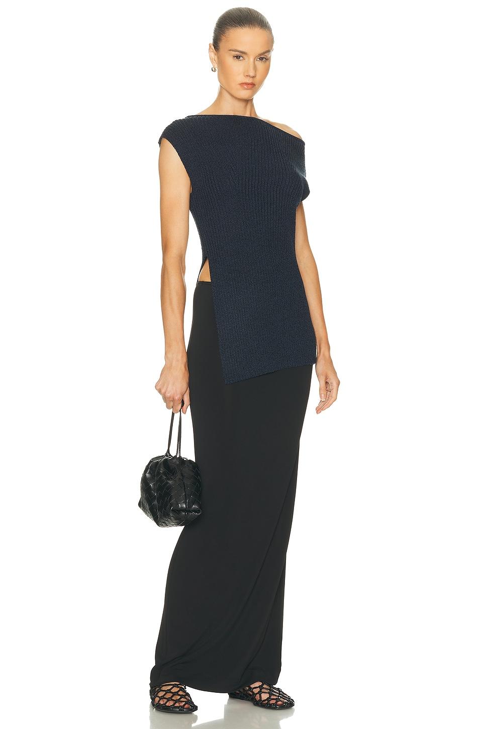 top50% viscose, 46% cotton, 3% nylon, 1% elastane / Dry clean only / Pull-on styling / Off-shoulder styling / Chunky knit fabric with slit at side / Made in China / Our Style No. ALC-WS440 / Manufacturer Style No. 7SWTP00723 / Model is wearing size S.