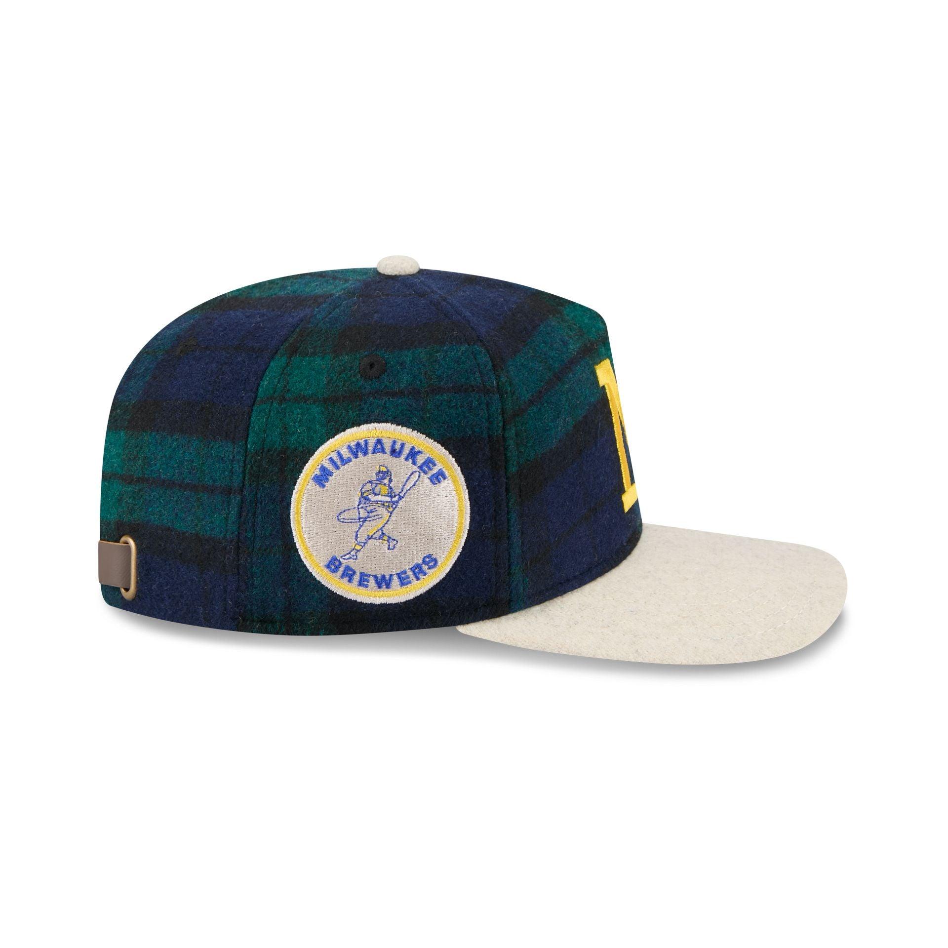 The Milwaukee Brewers Plaid Letterman 19TWENTY Adjustable Cap features an embroidered Brewers Cooperstown logo at the front panels against a wool plaid fabrication throughout the cap. Additional details include a team circle patch at the right-wear side and adjustable leather closure at the rear.