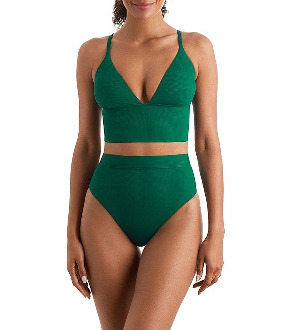 Mimi Flamingo Lido Rib Blake Solid V-Neck Midkini Swim Top