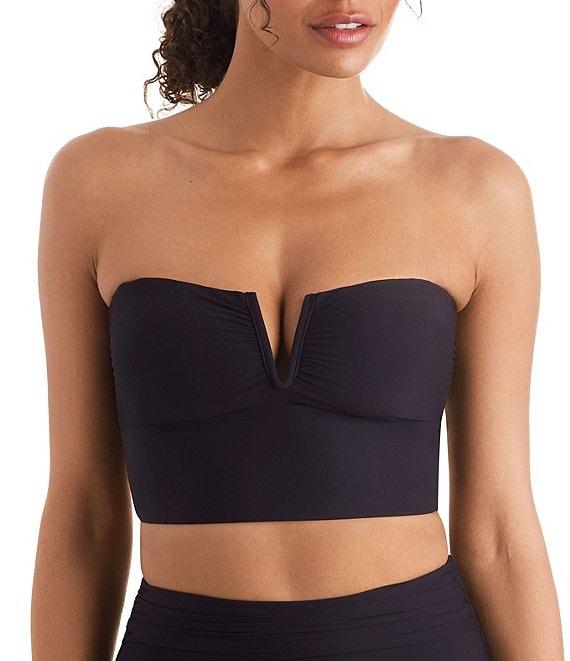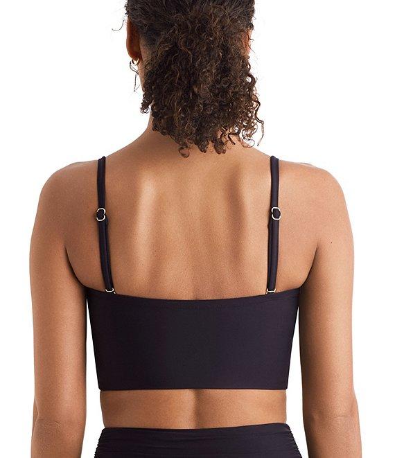 From Mimi Flamingo, this swim top features: Midkini silhouette V-wire neckline Removable soft cups Convertible straps Fully lined Pullover construction Recycled nylon/elastane Hand wash Imported.