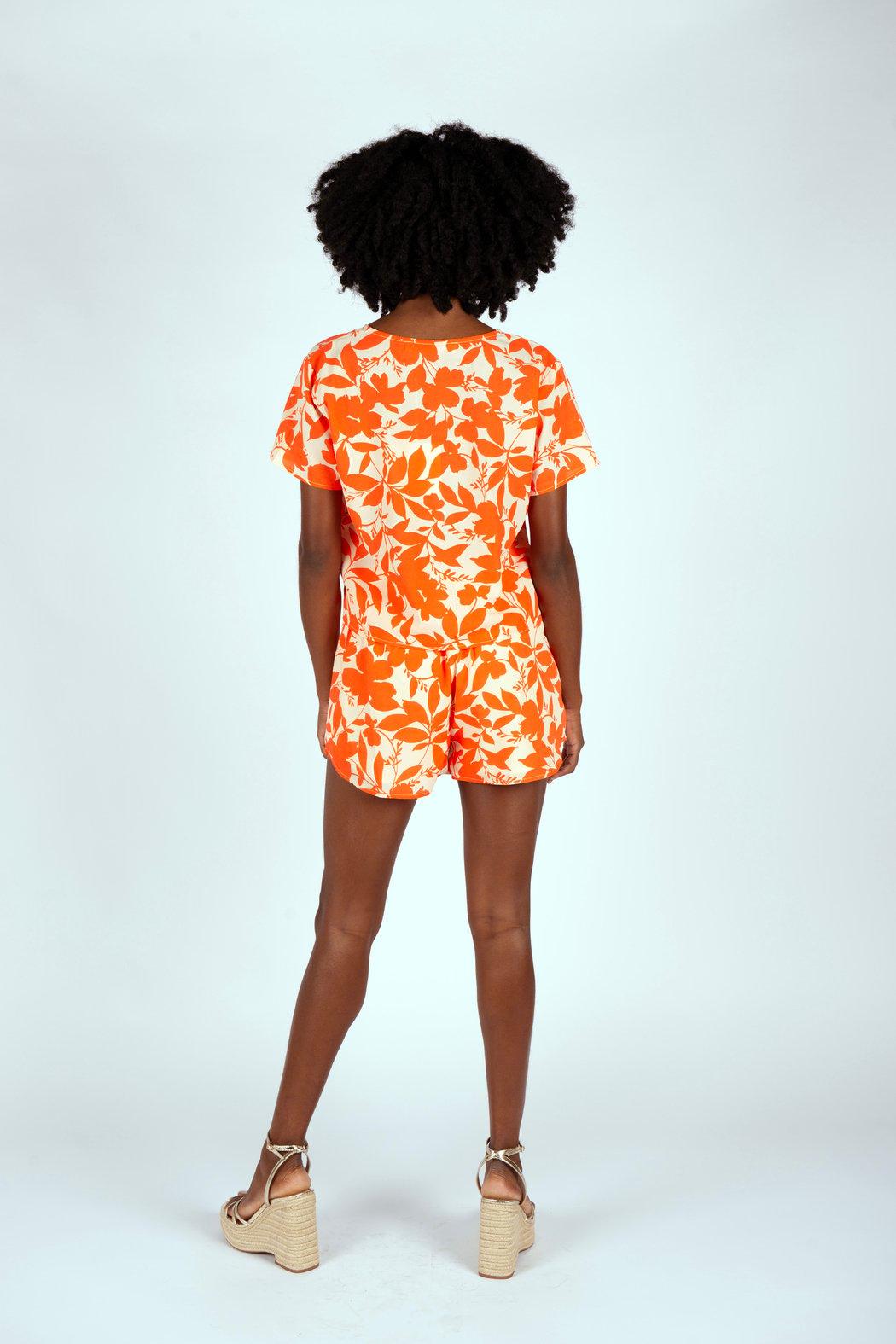 The top boasts a flattering V-neckline and short sleeves, providing a relaxed and airy feel. The high-waisted shorts feature an elastic waistband for a snug yet comfortable fit, ensuring ease of movement throughout the day. The classic black color adds a touch of sophistication, making this set an essential part of your summer wardrobe.