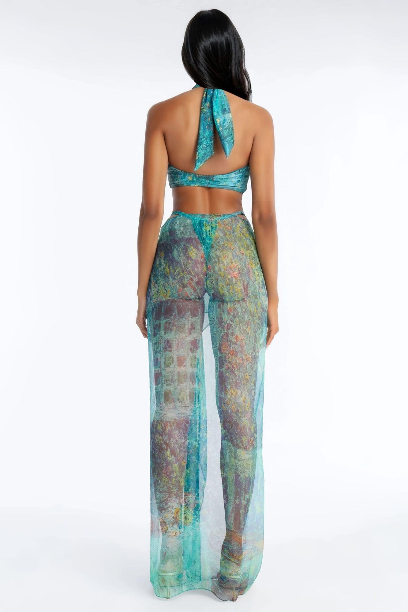 Available In Emerald. 3 Piece Bikini Set Bandeau Bikini Top Halter Neck Ties Removable Padding Bikini Bottom/Cheeky Adjustable Ruching Matching Swim Cover Up Sarong Chiffon/Maxi Removable Metal Brooch Included Final Sale Disclaimer: Print Placement May Vary Top/ Bottom Shell & Lining : 82% Polyester 18% Spandex Cover up Self : 100% Polyester Imported