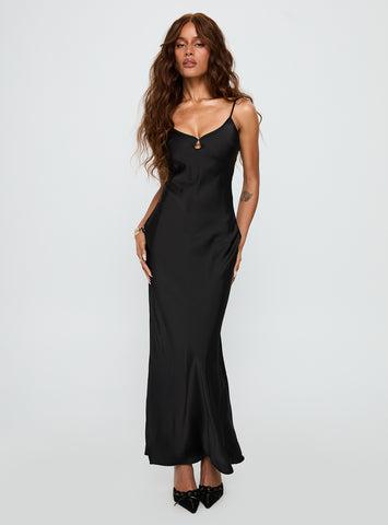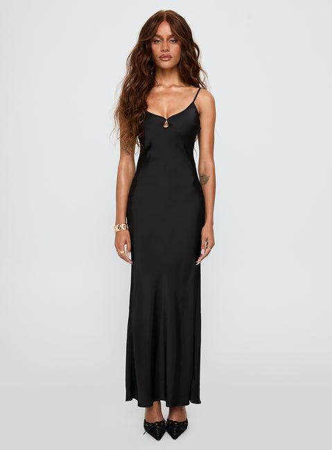 Satin cut-out Maxi dress V-neck, invisible zipper on side, adjustable straps, u back design with tie closure Non-stretch material, unlined 95% polyester 5% elastane Cold gentle machine wash