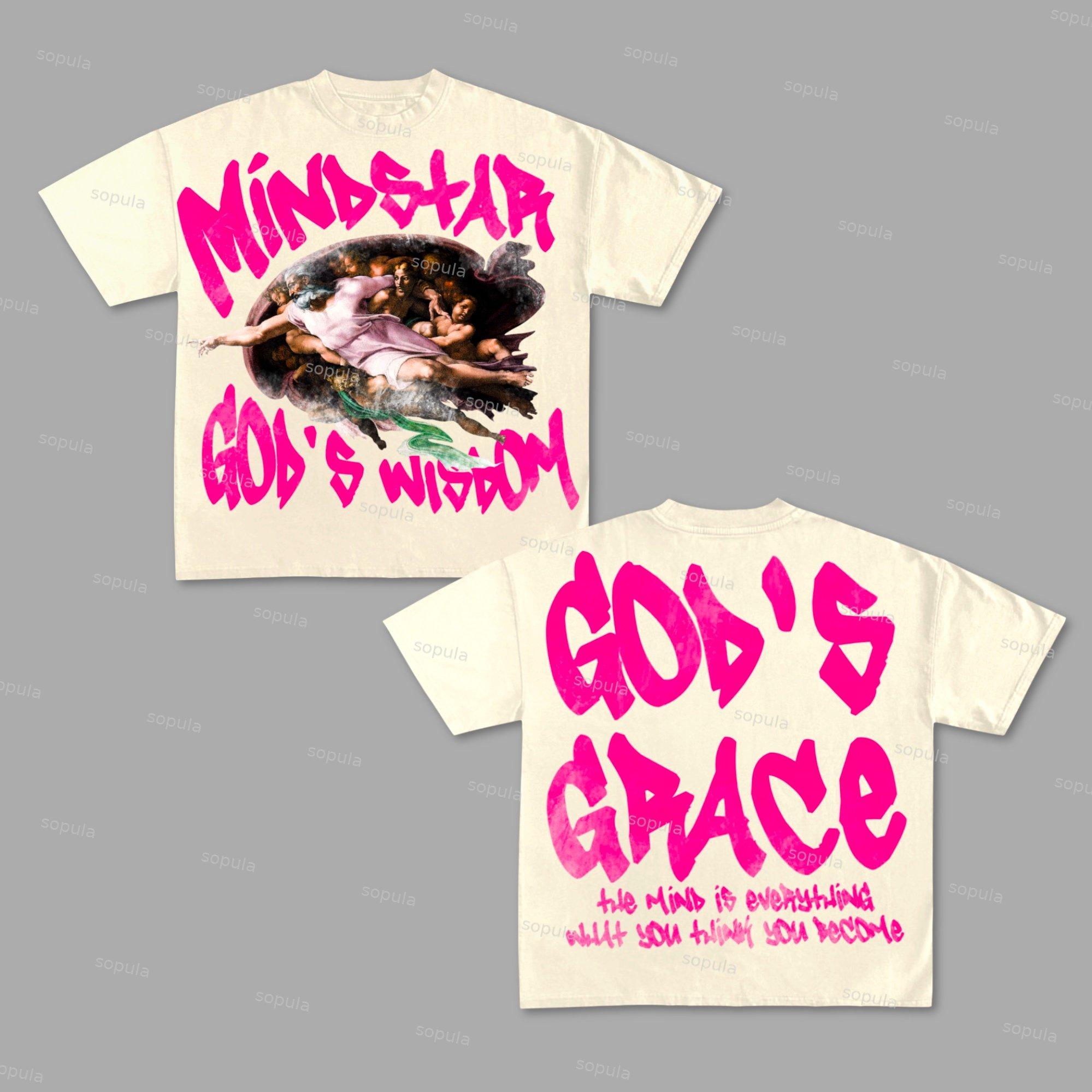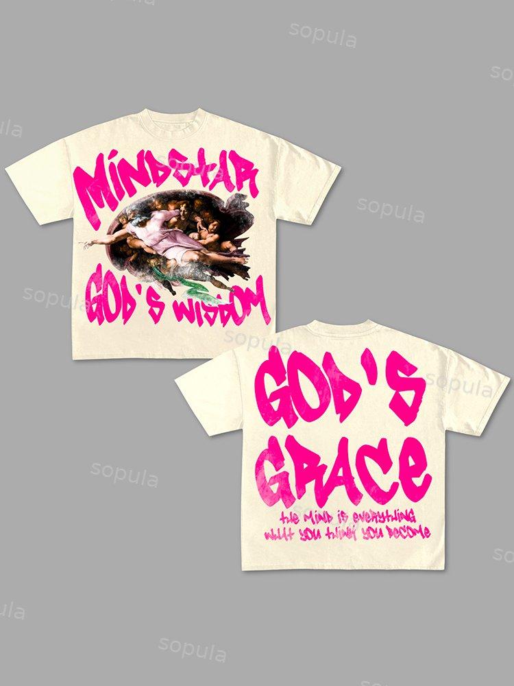 Mindstar - God's Wisdom Print Pattern Cotton T-Shirt