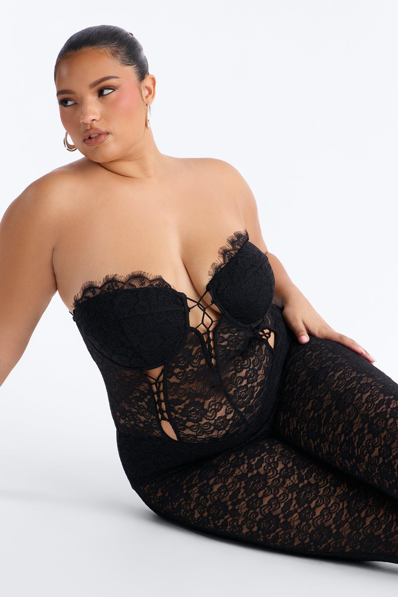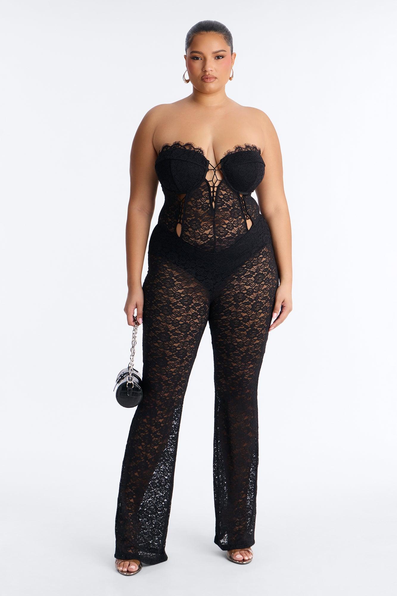 Mindy Lace Strapless Jumpsuit - Black