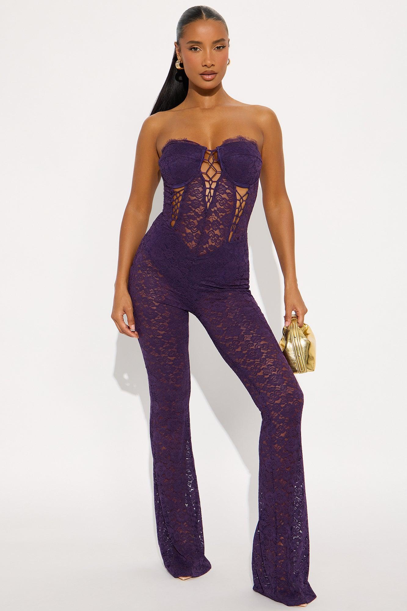 Mindy Lace Strapless Jumpsuit - Plum Female
