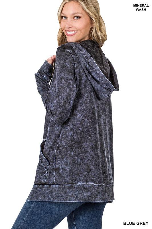 The Mineral Wash Zippers Hoodie Jacket is a trendy and comfortable piece that combines the style of a hoodie with the functionality of a jacket. The mineral wash finish gives it a unique and vintage-inspired look, adding character to your outfit. With the added zippers and a hood, it offers both fashion and practicality, making it a standout choice for casual and athleisure wear.** Each item is unique, expect variations in color and finishing