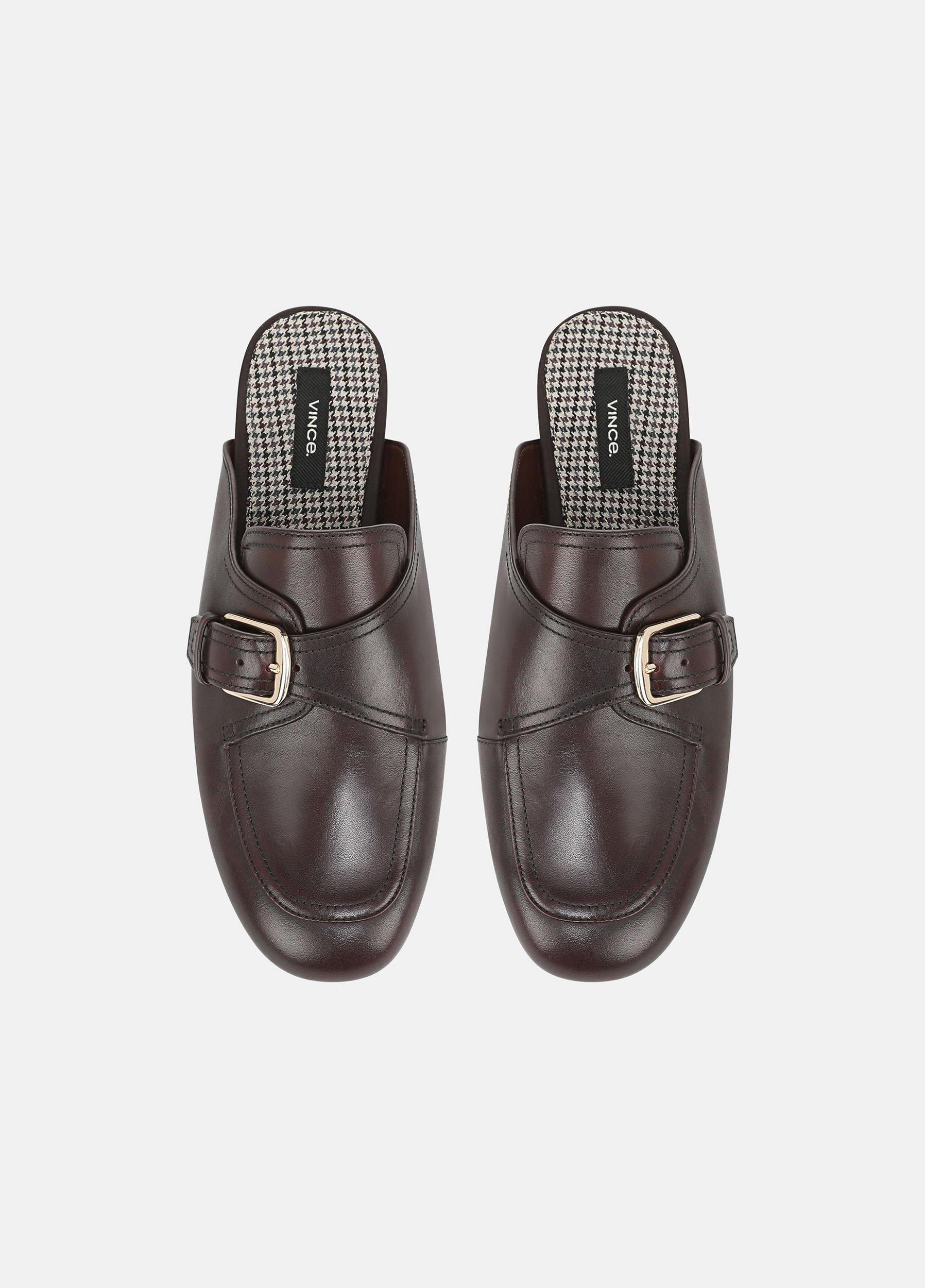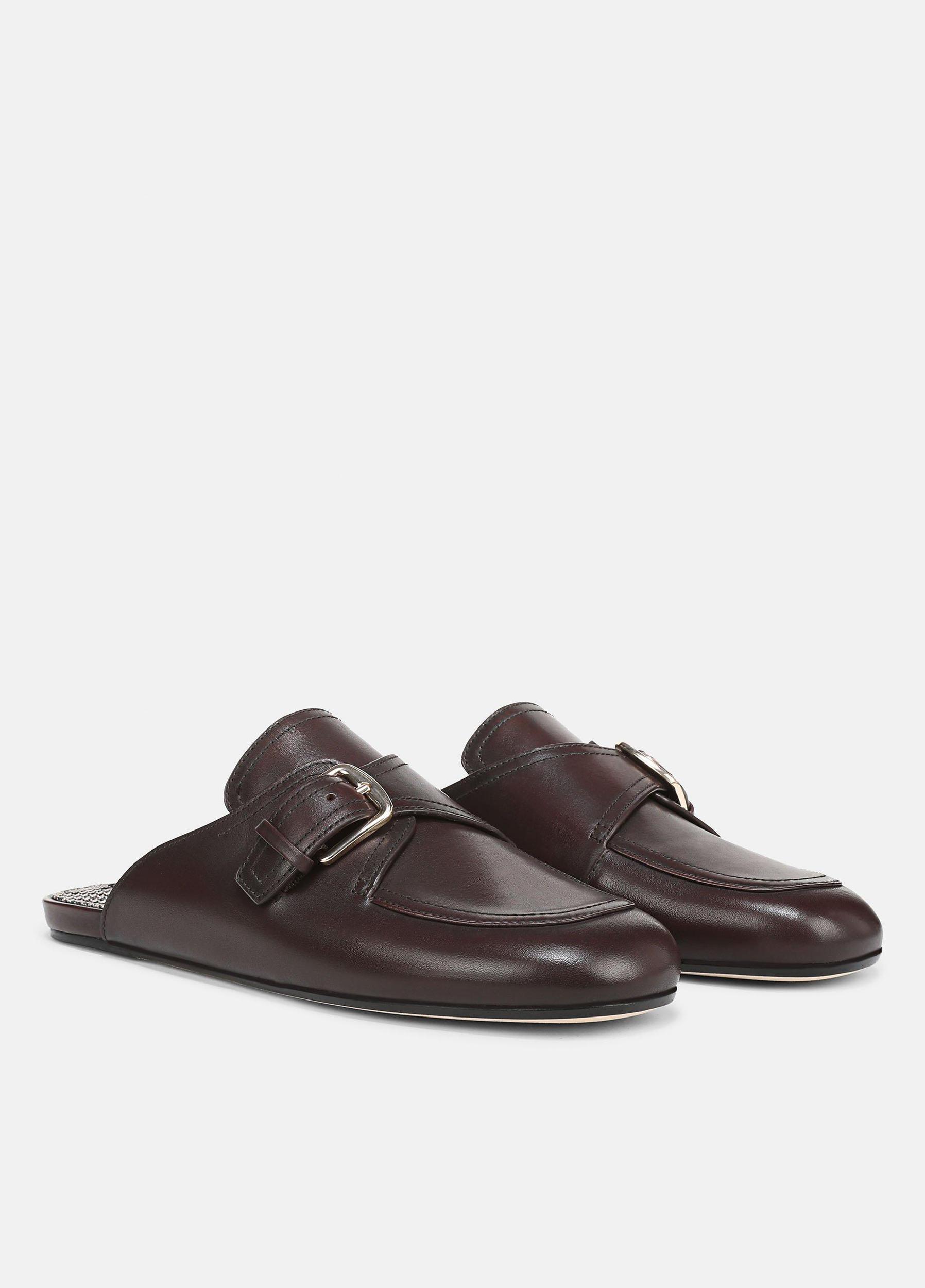 Our Minetta Loafer Mule is composed of soft leather and finished with a self-strap across the vamp that secures with a squared metal buckle.