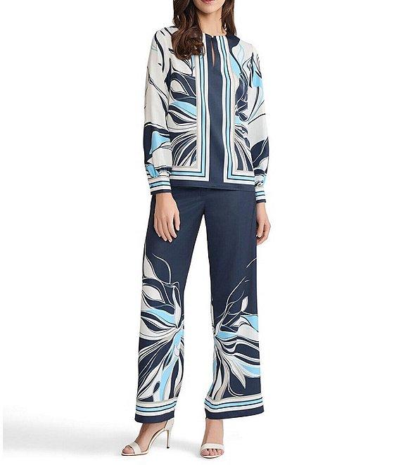 From Ming Wang, this pant features: Crepe de chine fabrication Floral print Wide leg Side seam pockets Elastic back Front hook/zip closure Approx. 30.5" inseam Polyester/spandex Hand wash Imported.