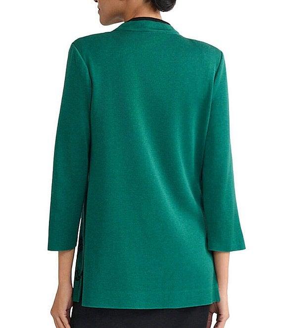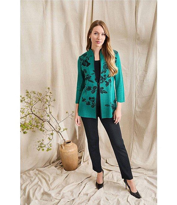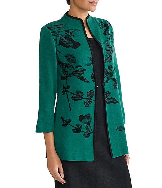 Ming Wang Amica Floral Jacquard Knit Mandarin Collar Bracelet Sleeve Jacket
