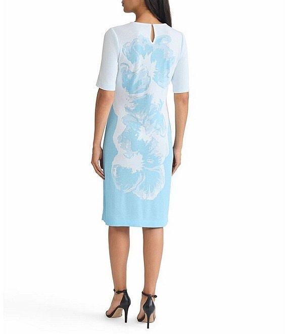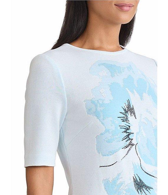 Ming Wang Bold Floral Jacquard Knit Round Neck Short Sleeve Sheath Dress