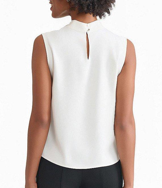 From Ming Wang, this tank features: Crepe de chine fabrication Tank silhouette Cowl neckline Sleeveless Straight hem Back keyhole button closure Approx. 23" length Polyester Machine wash Imported.