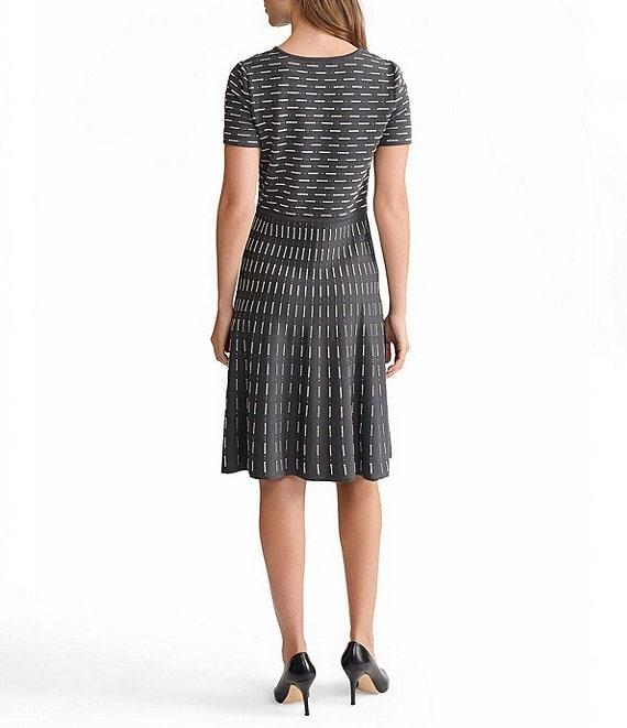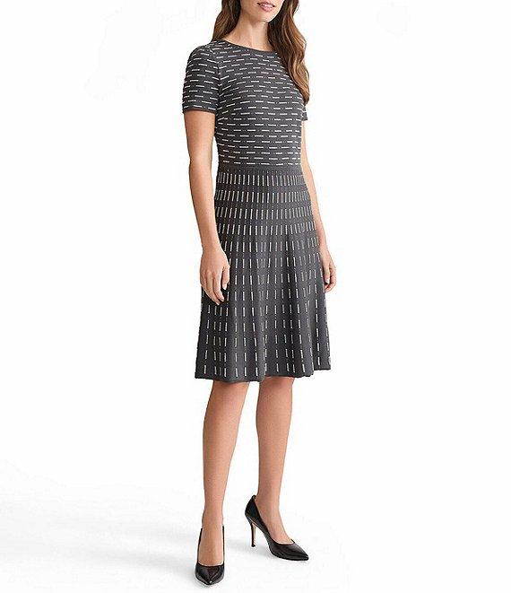 Ming Wang Digital Dash Soft Knit Round Neck Short Sleeve Fit-And-Flare Dress