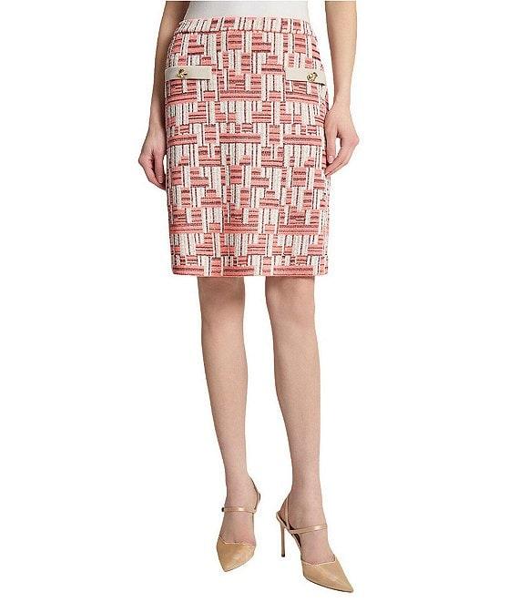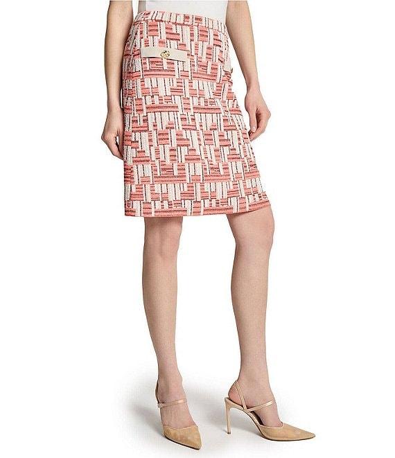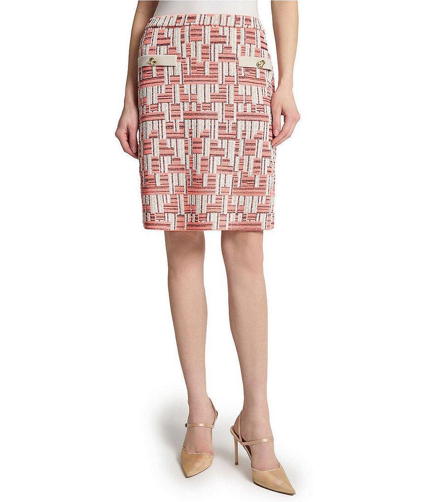Ming Wang Geometric Knit A-Line Skirt